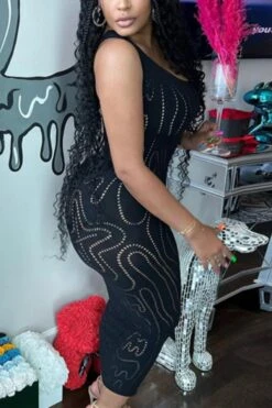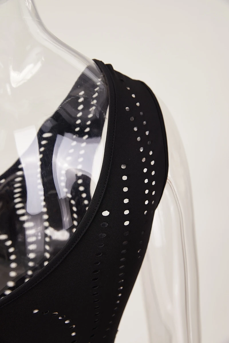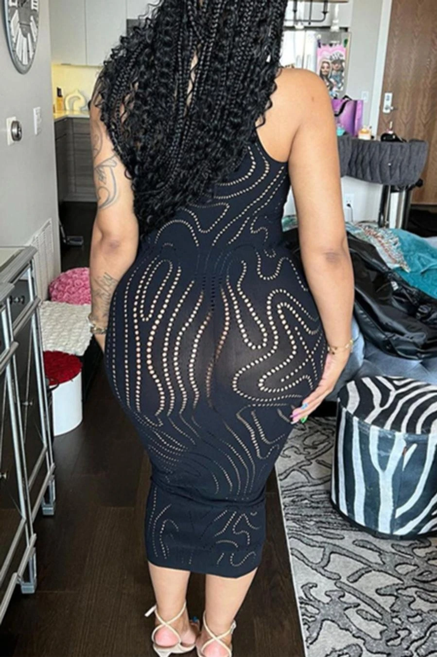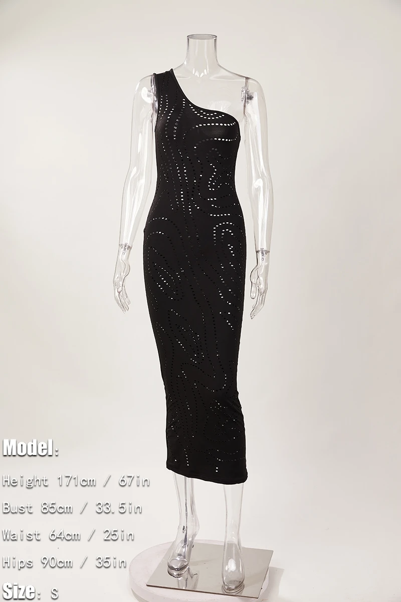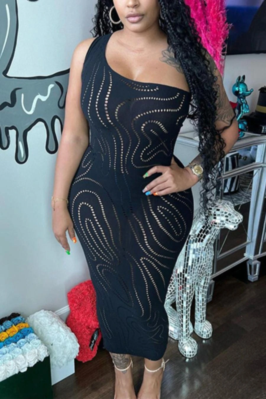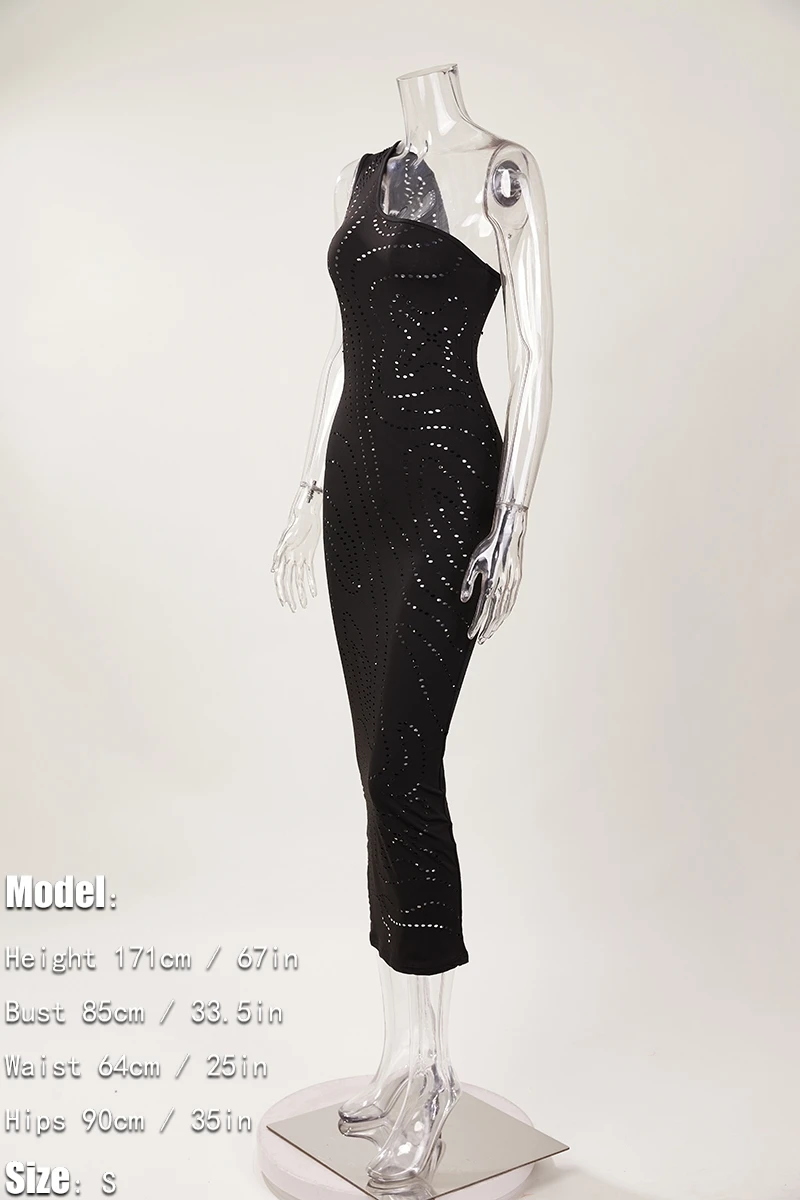 Sexy slight stretch pure color one shoulder hole bodycon midi dress