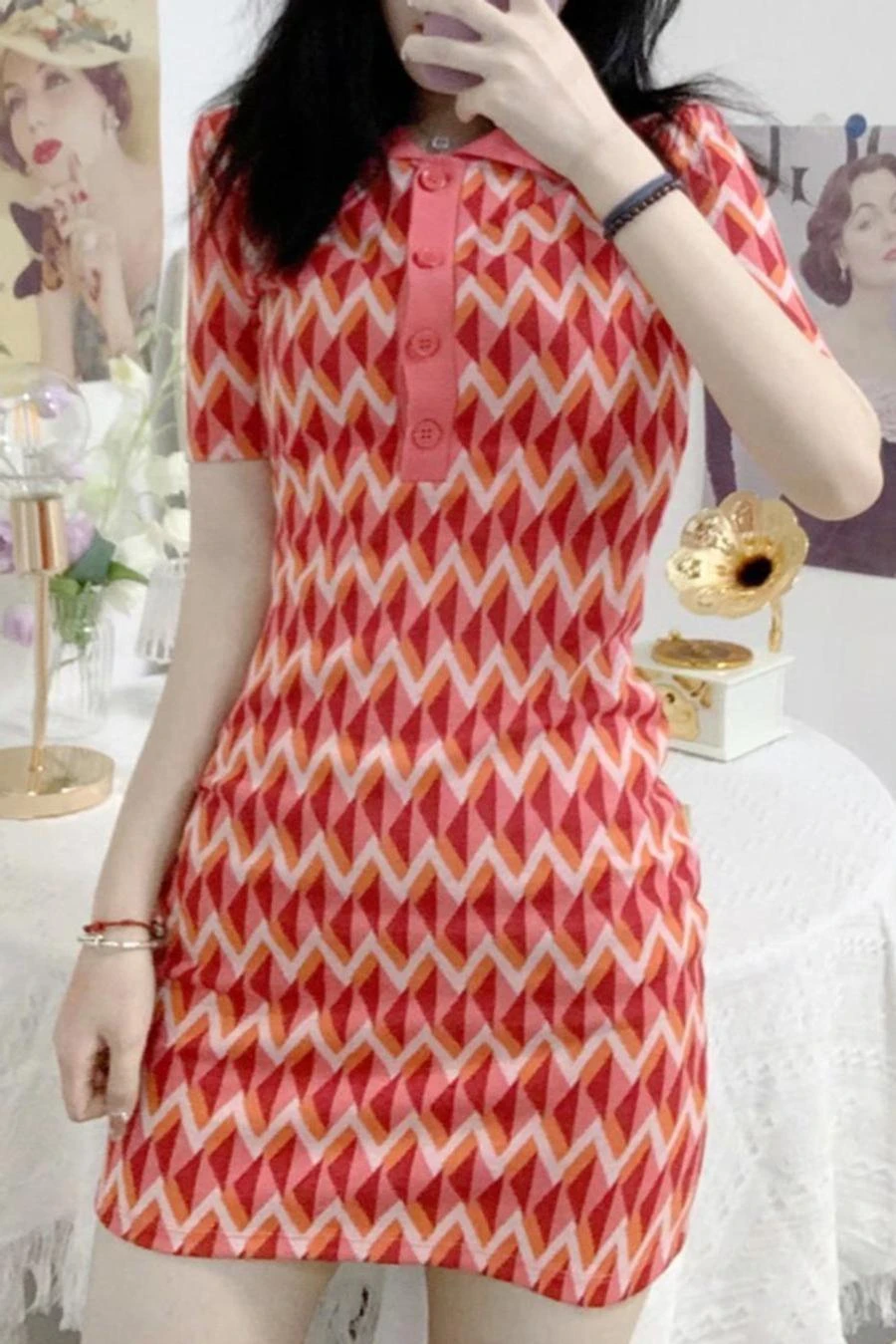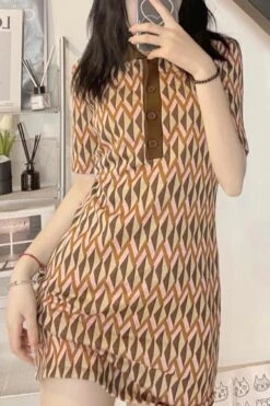 Sexy slight stretch ribbed knit contrast color lapel mini dress