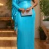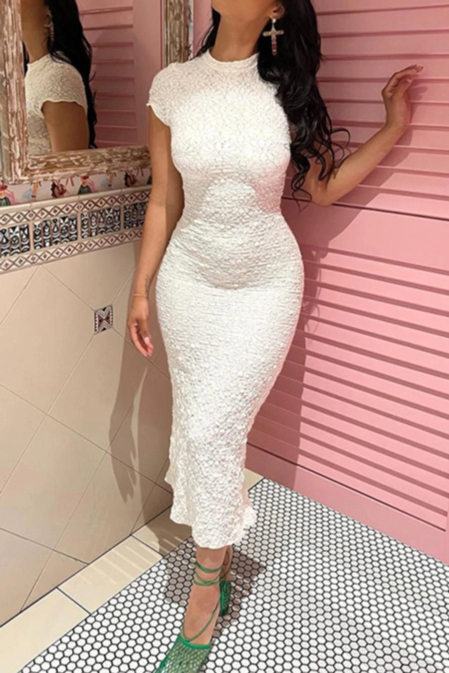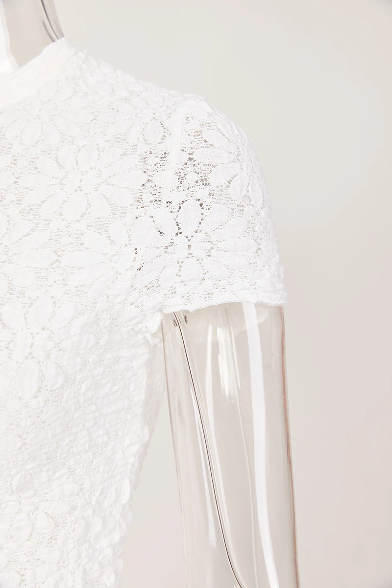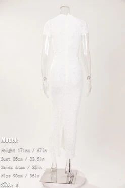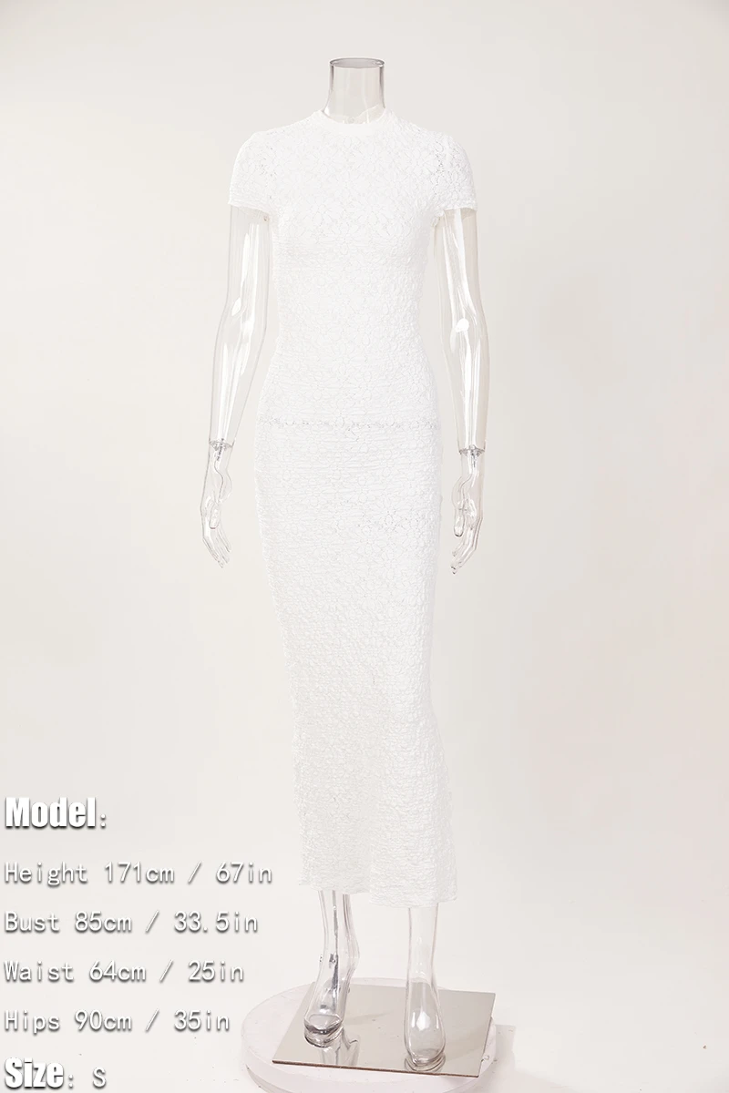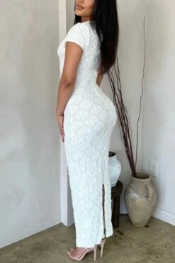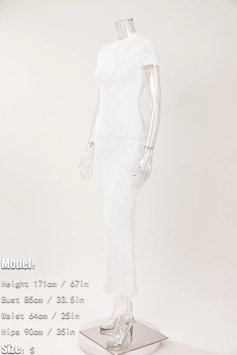 Sexy slight stretch see-through crew neck slit maxi dress