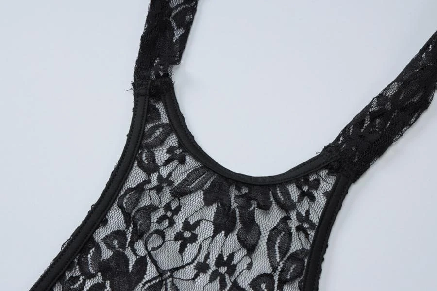 Sexy slight stretch see through lace halter-neck bodycon mini dress(no panty)