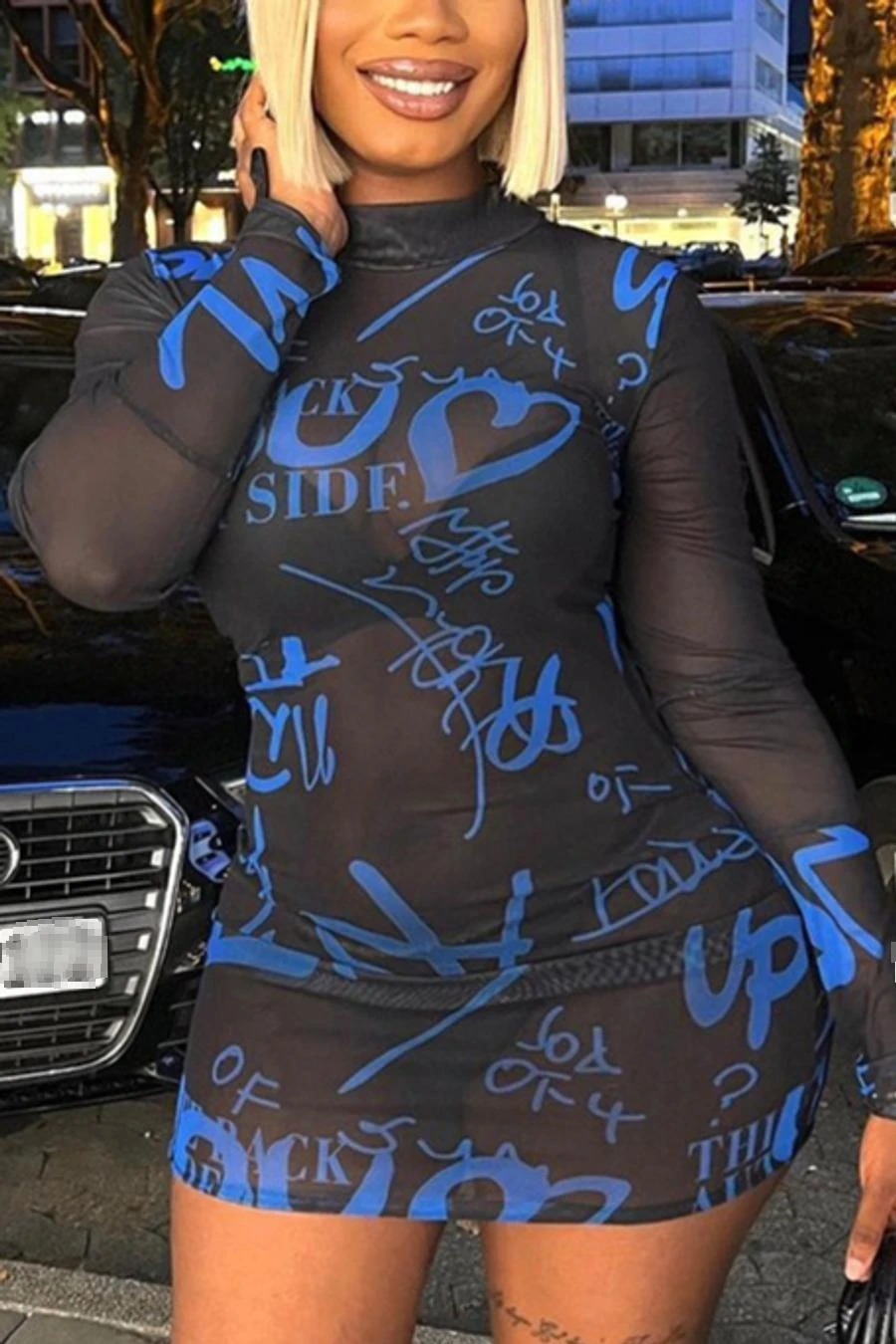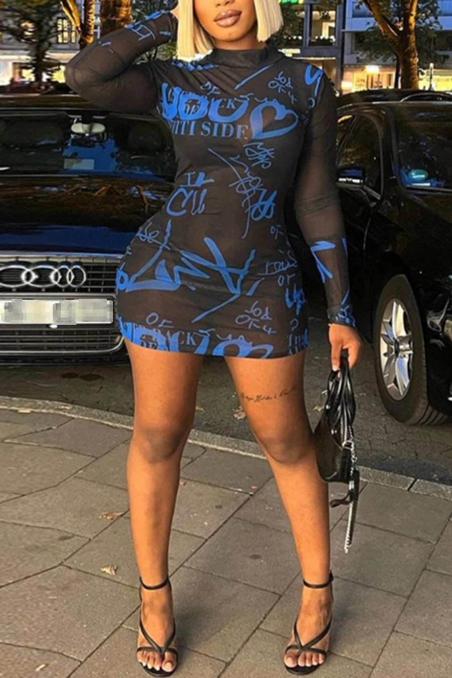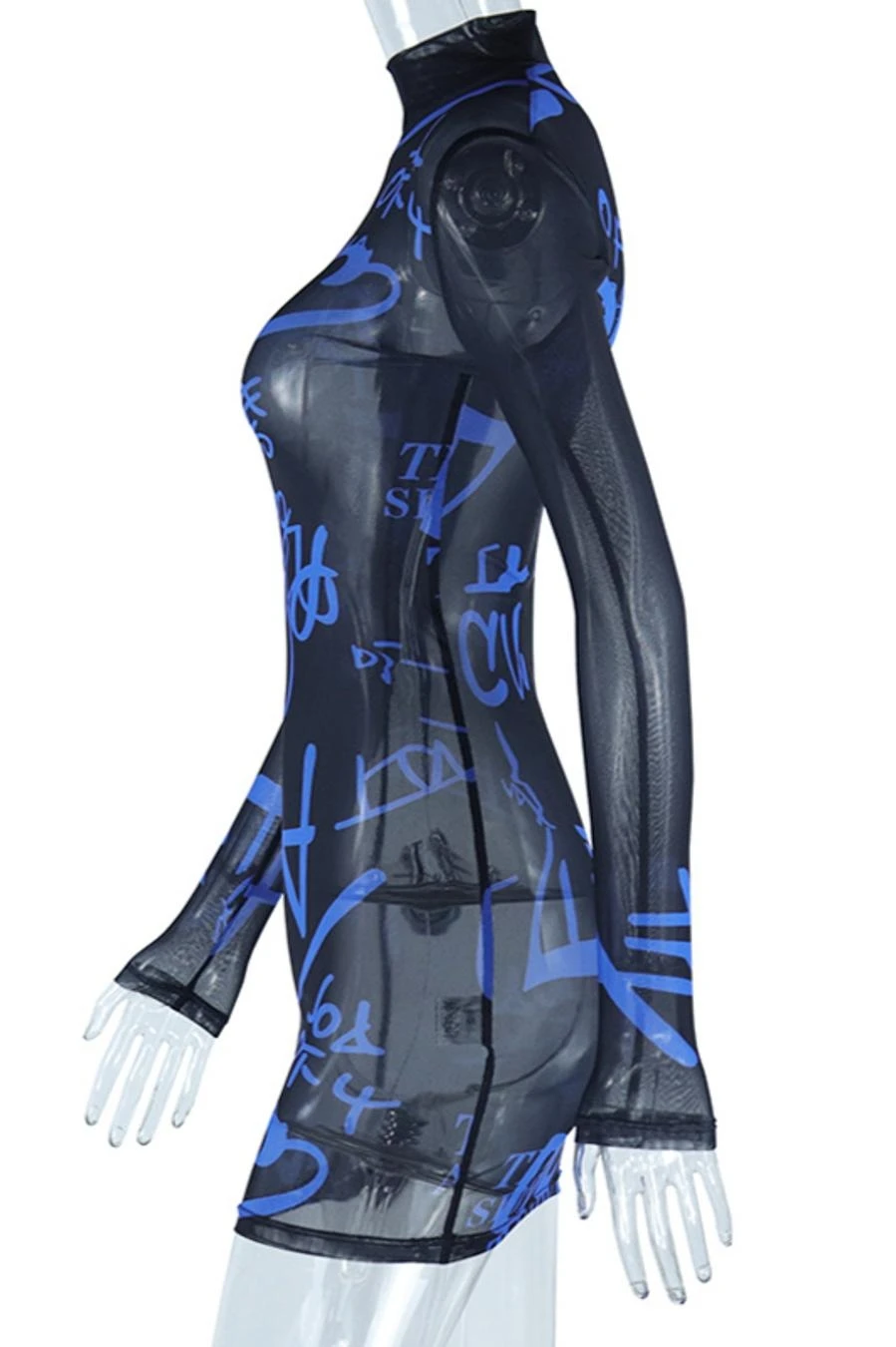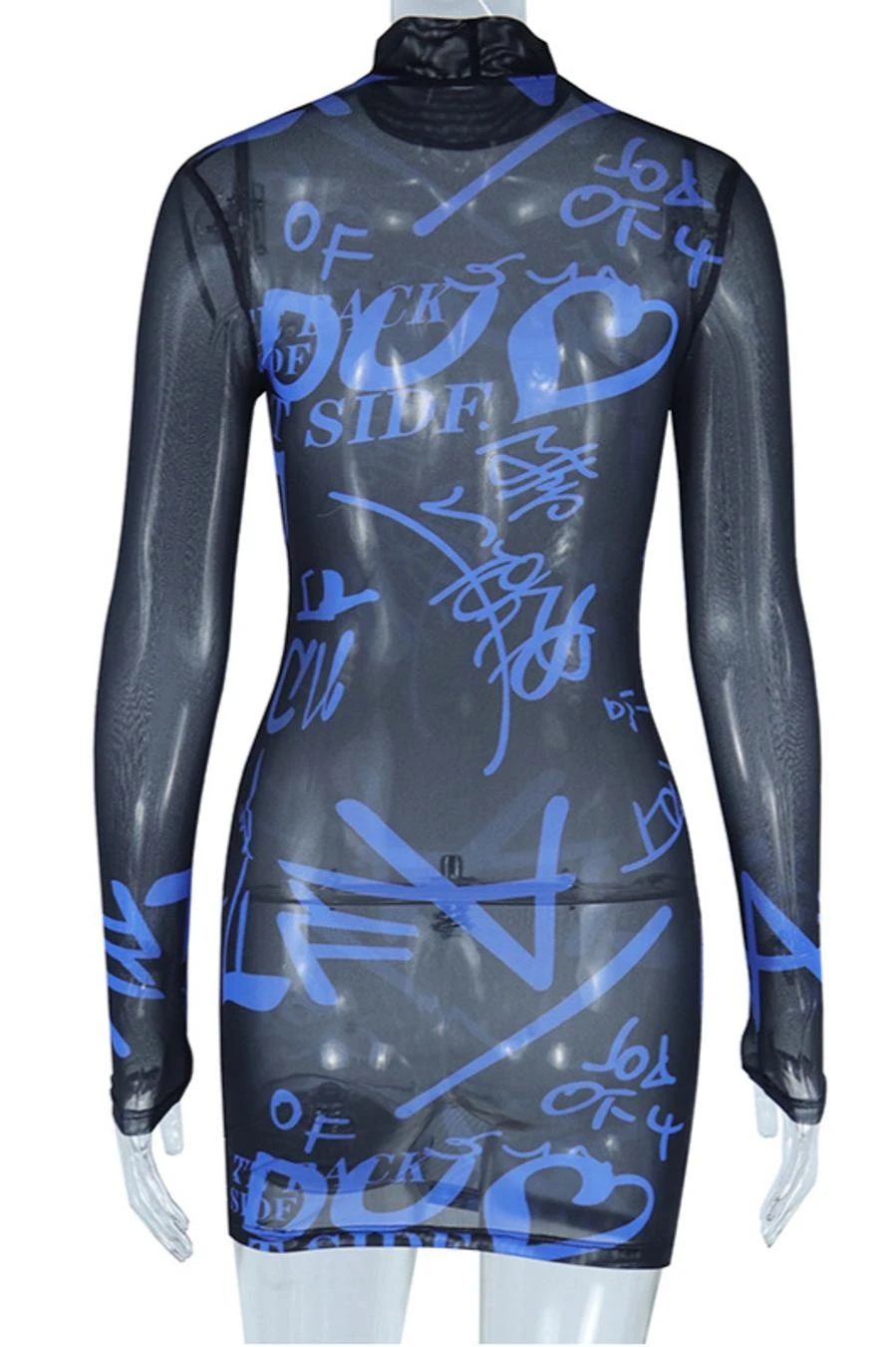 Sexy slight stretch see through mesh letter printing mini dress(no underwear)