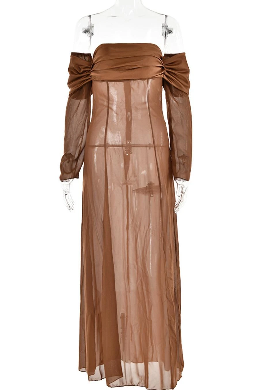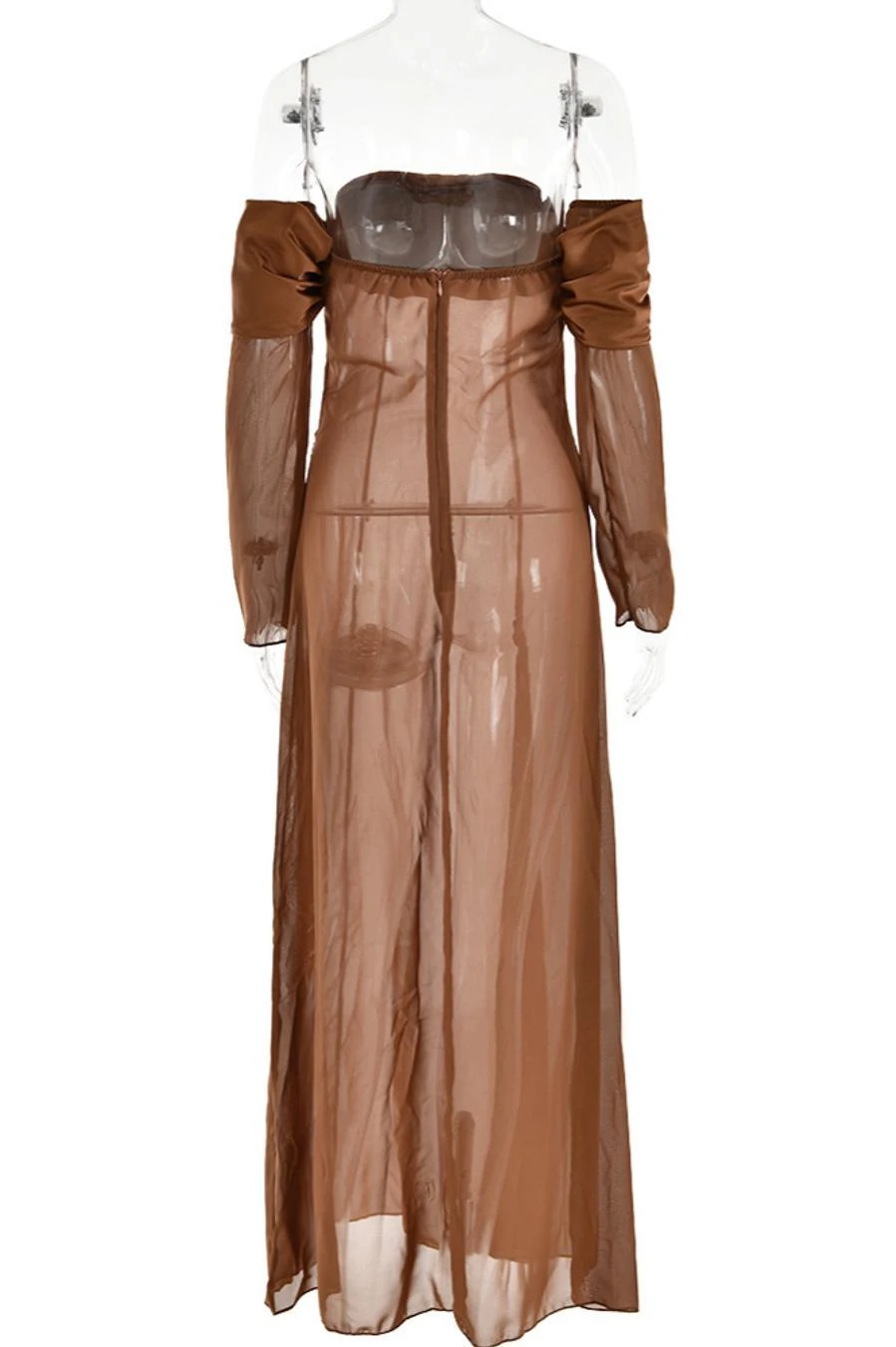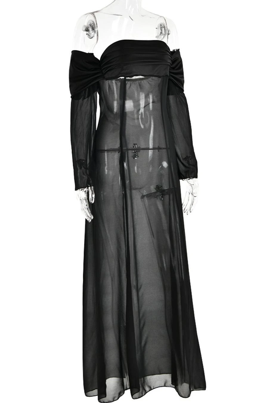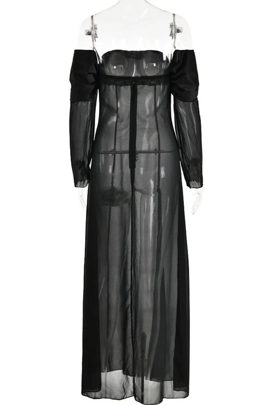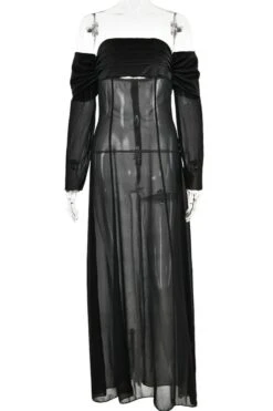 Sexy slight stretch see through mesh off-shoulder maxi dress (without underwear)