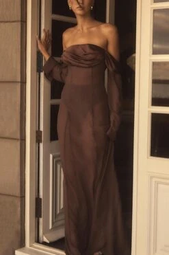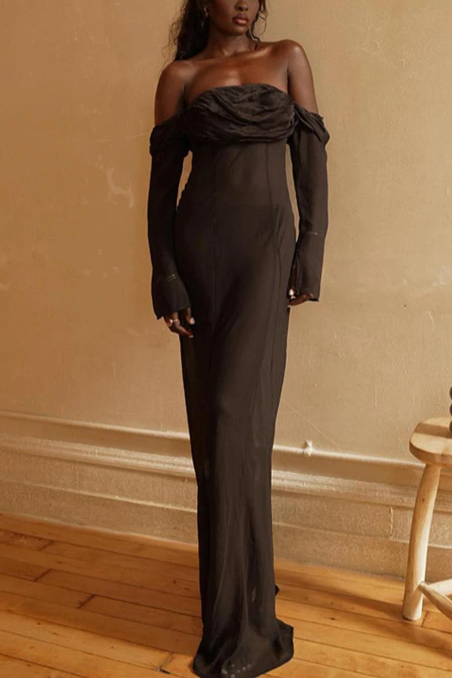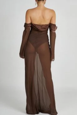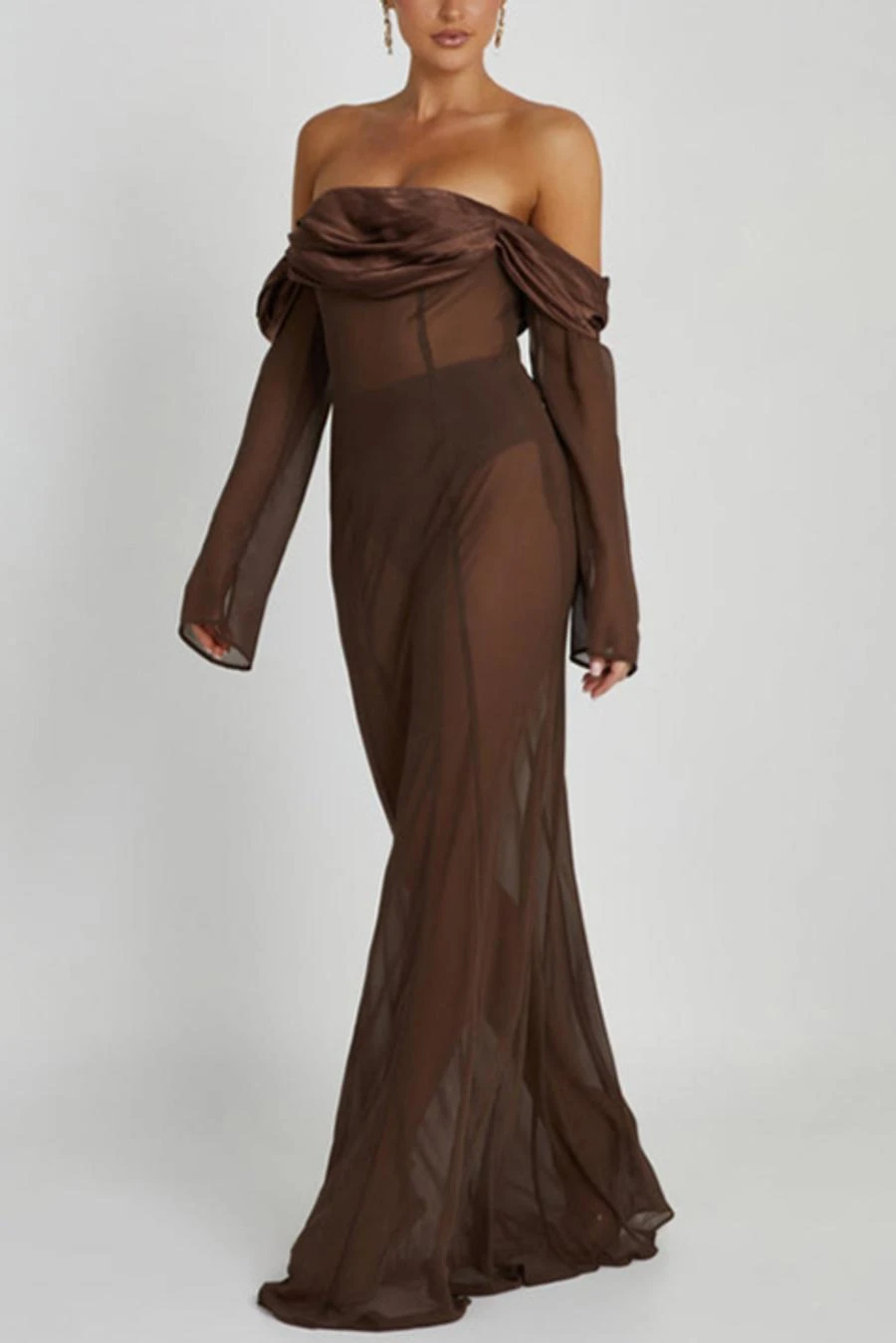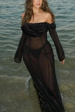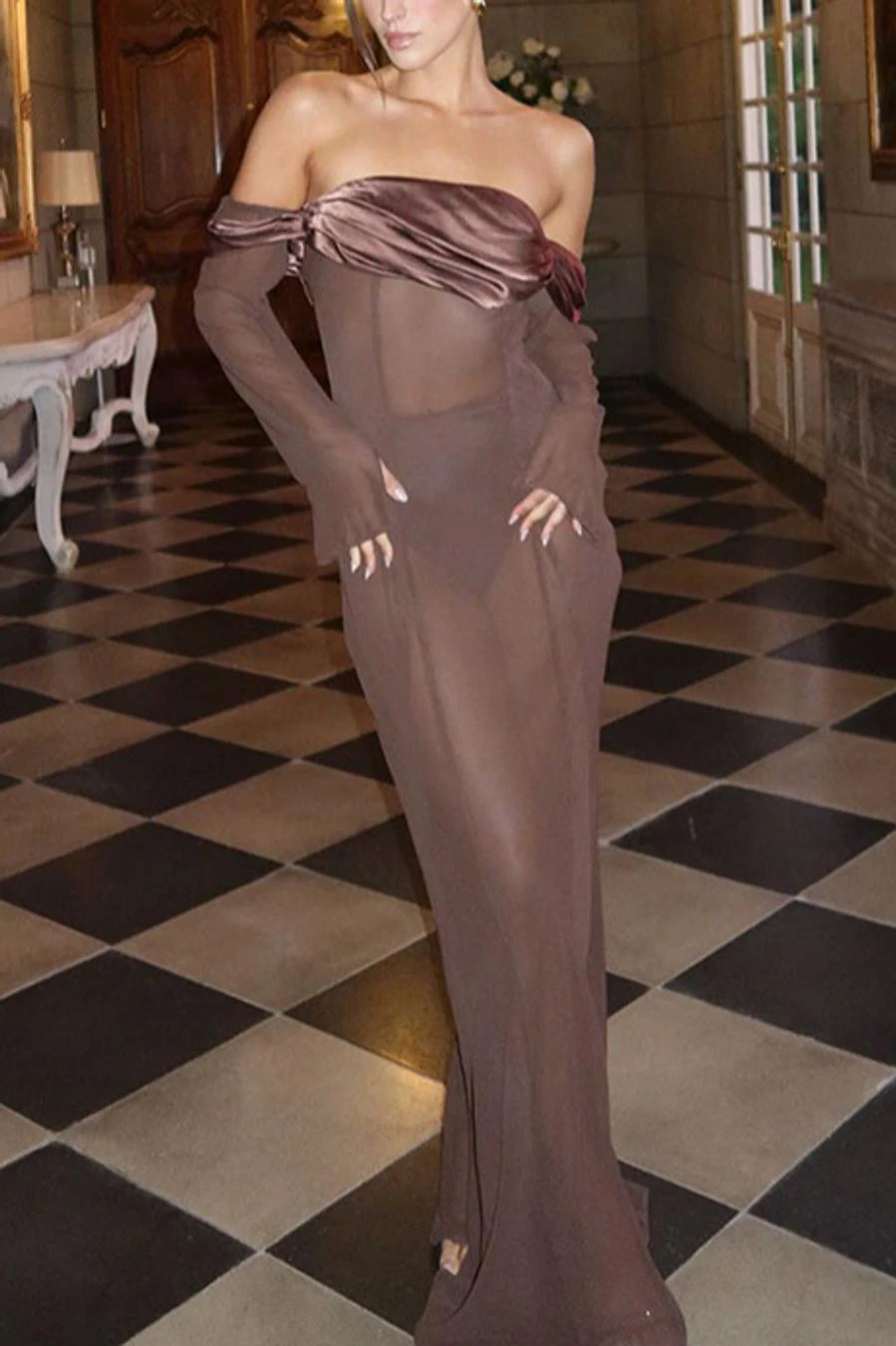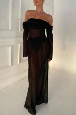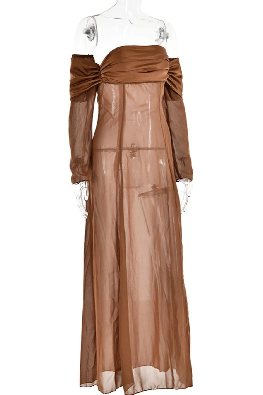 Sexy slight stretch see through mesh off-shoulder maxi dress (without underwear)