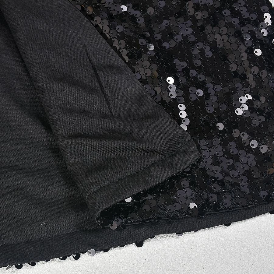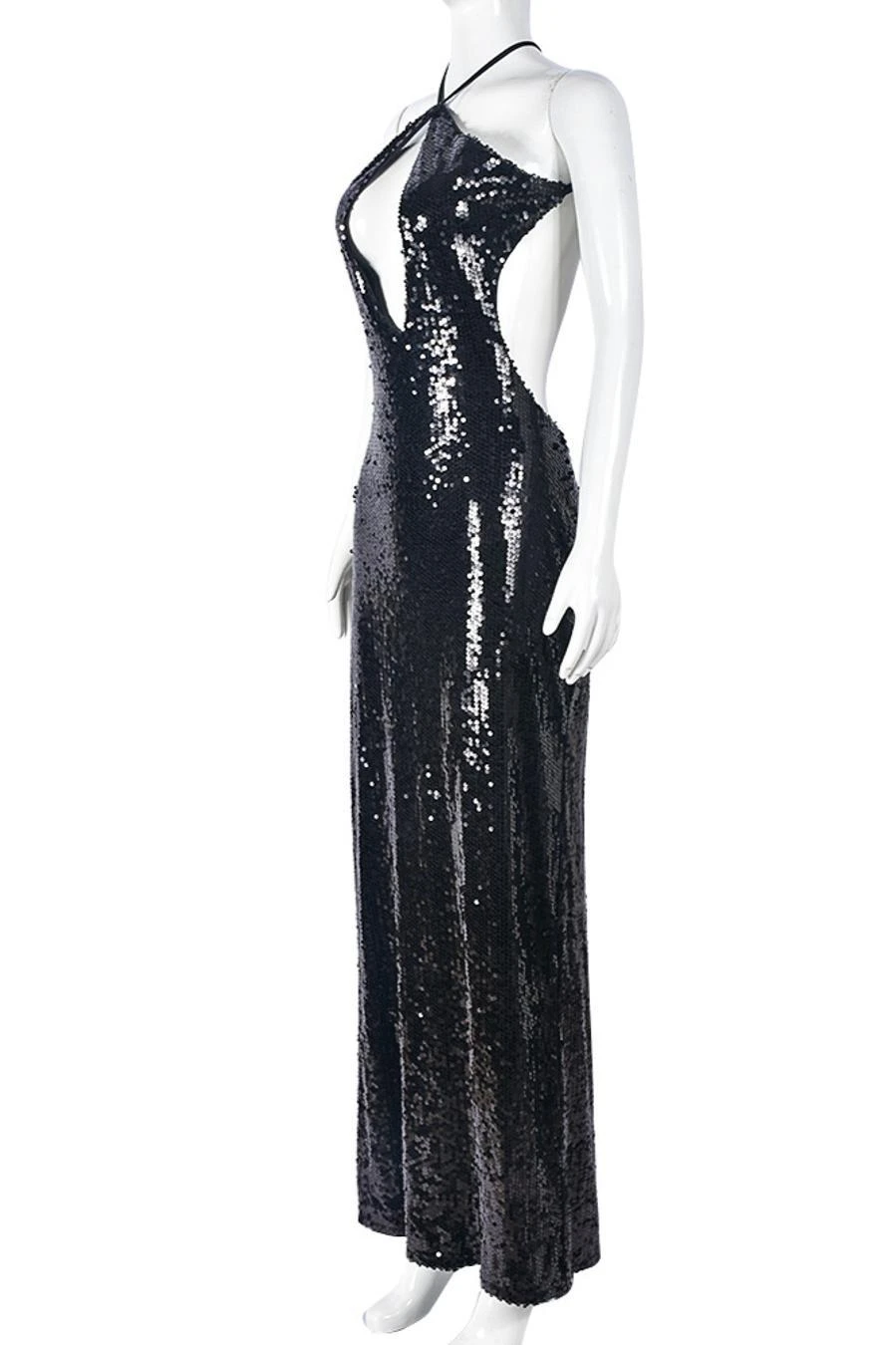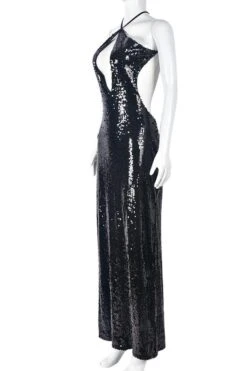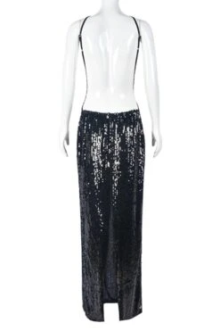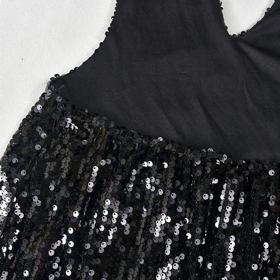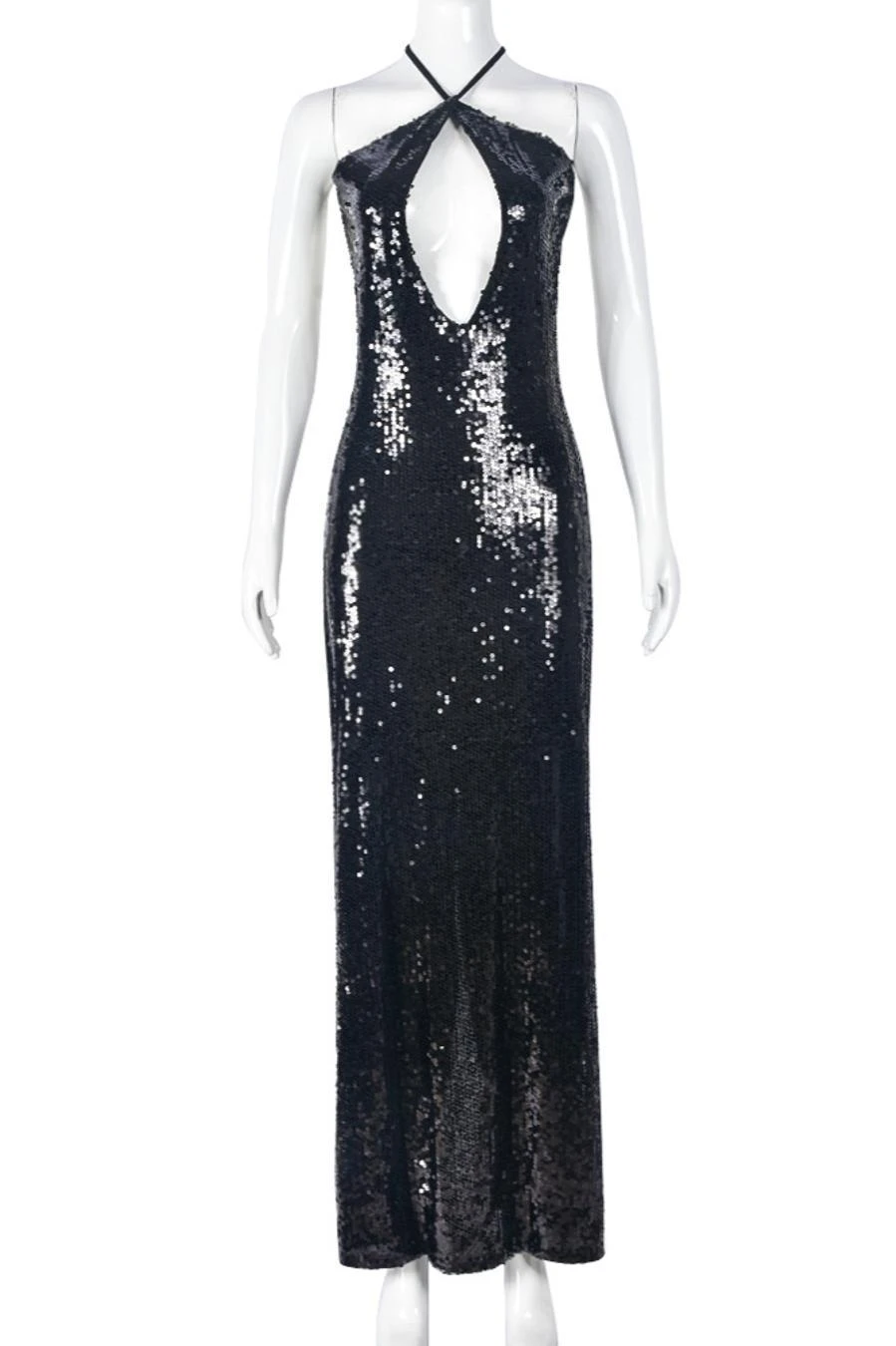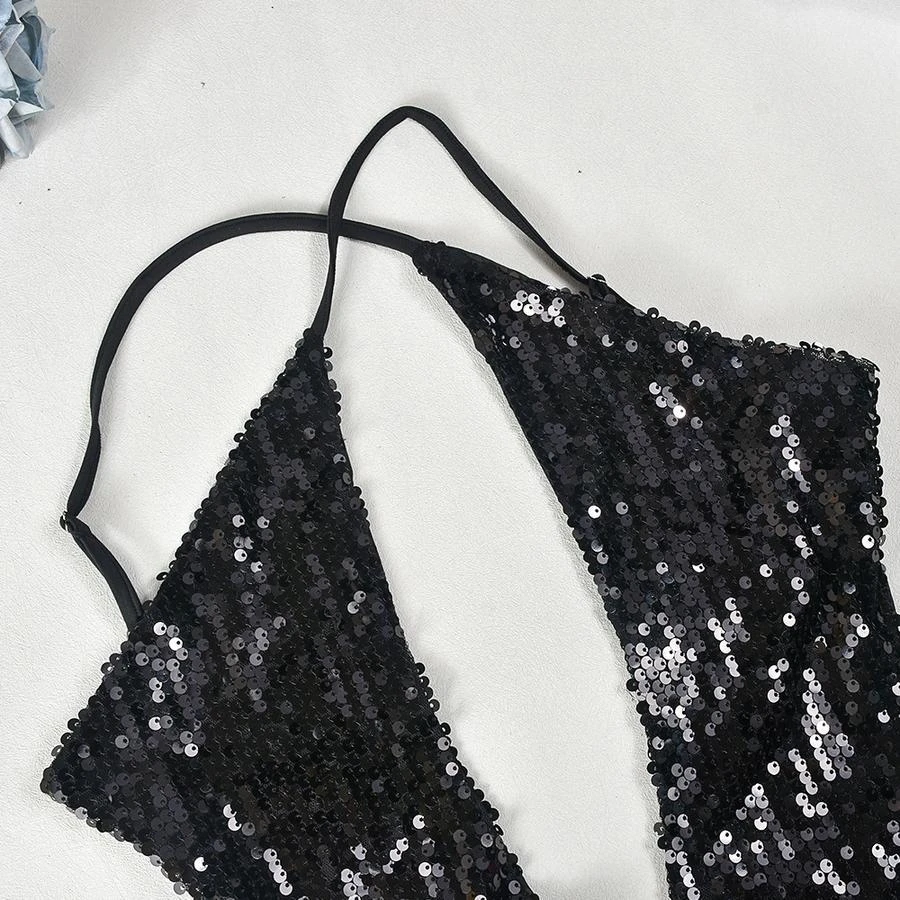 Sexy slight stretch sequin cross sling hollow maxi dress