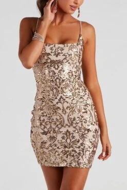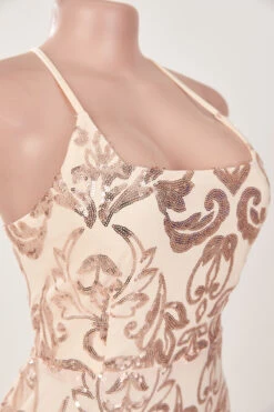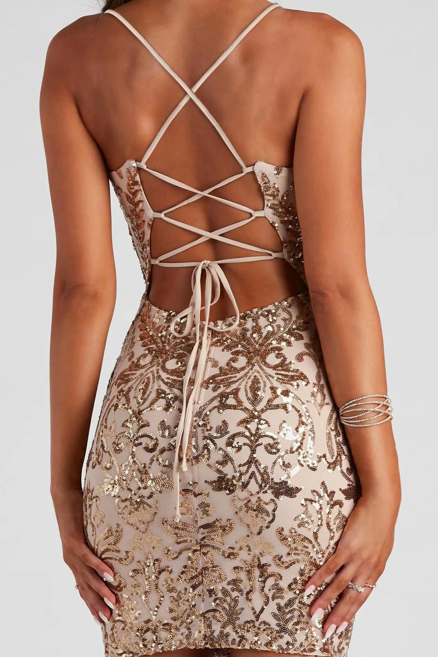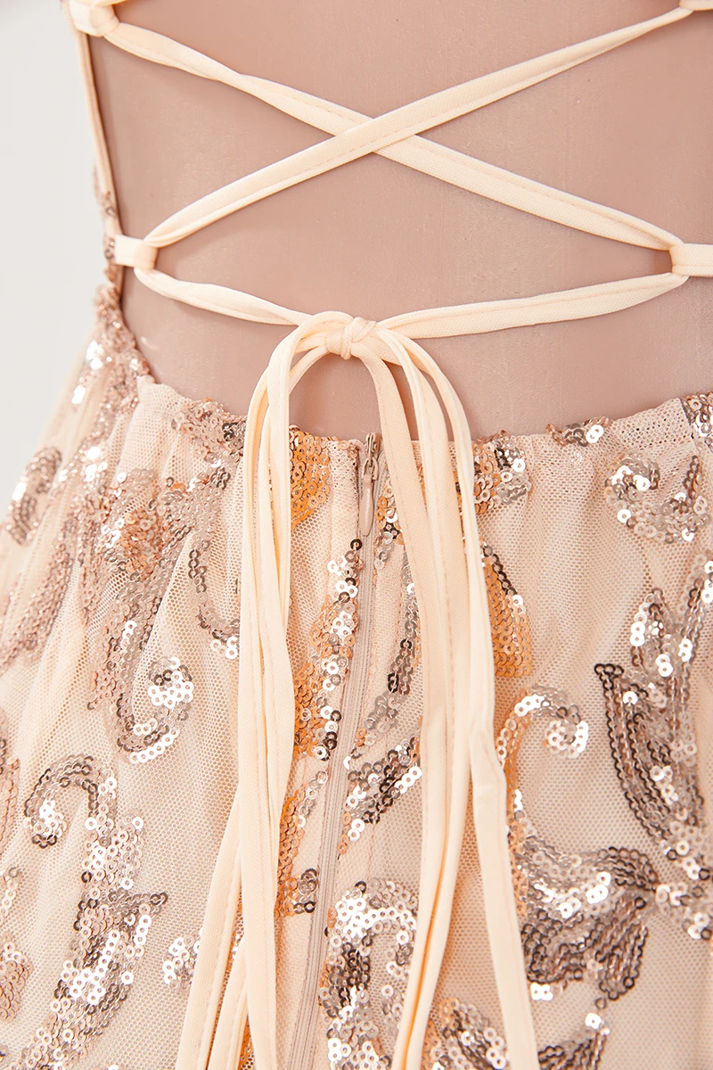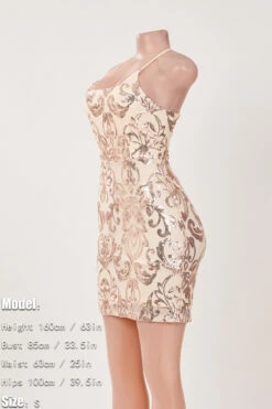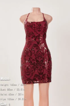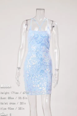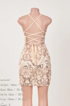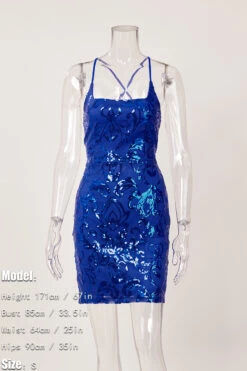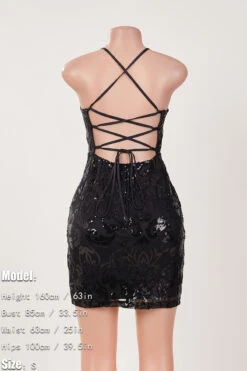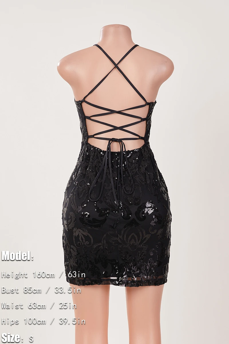 Sexy slight stretch sequin decor slim backless lace-up mini dress