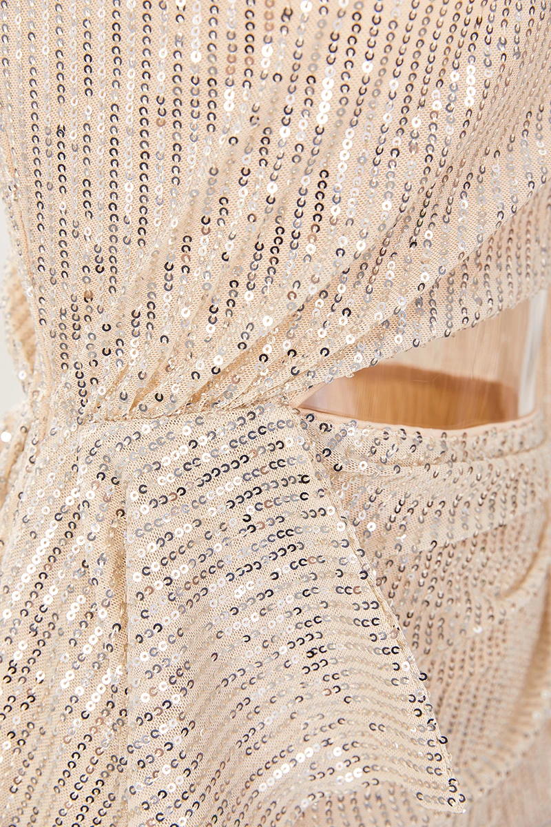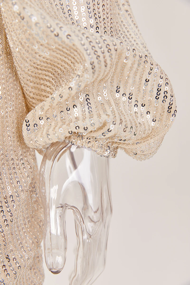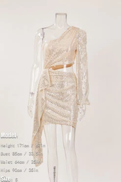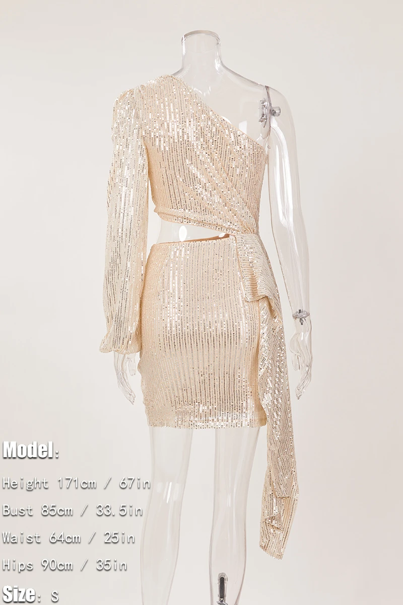 Sexy slight stretch sequins one shoulder hollow slim mini dress