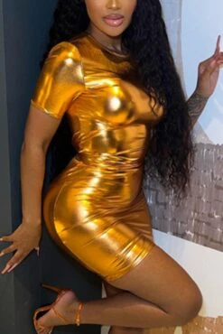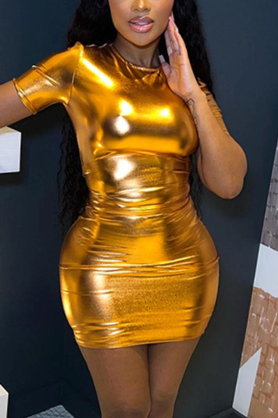 Sexy slight stretch simple 4 colors solid color slim holographic fabric mini dress