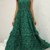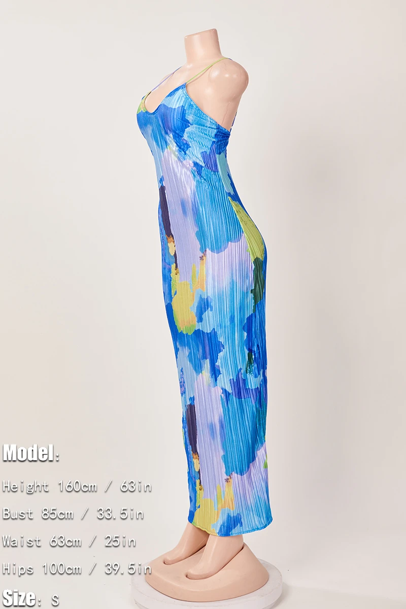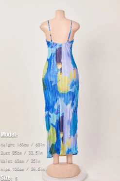 Sexy slight stretch sling backless tie-dye printing pleated maxi dress#1