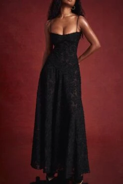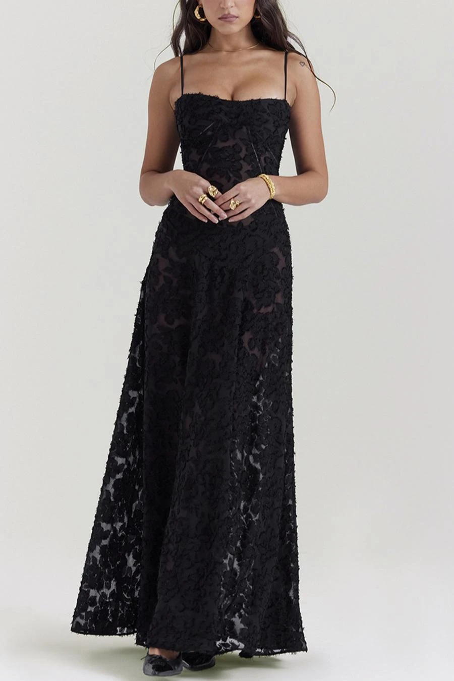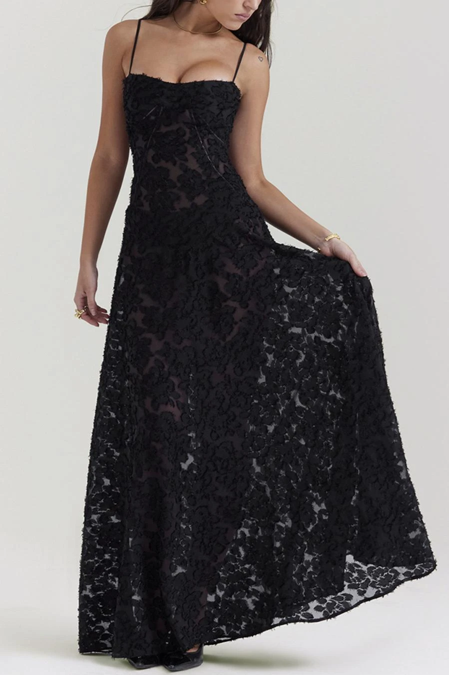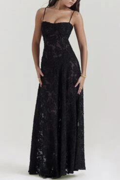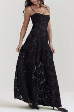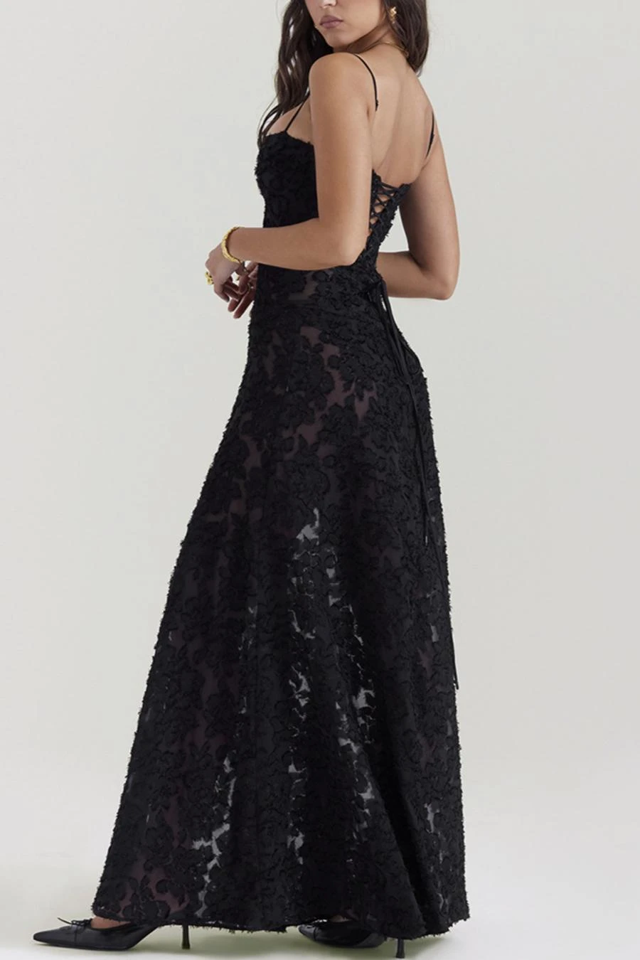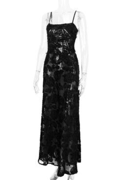 Sexy slight stretch sling jacquard see-through backless lace-up maxi dress