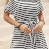 Casual L-4xl Plus Size Stripe Printing Slight Stretch Pocket Loose Mini Dress Wholesale Mini Dresses
