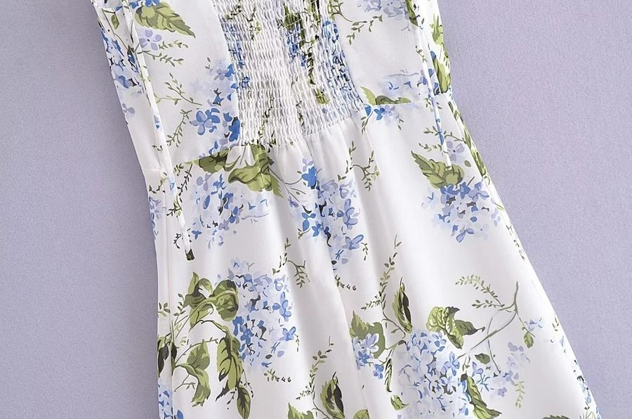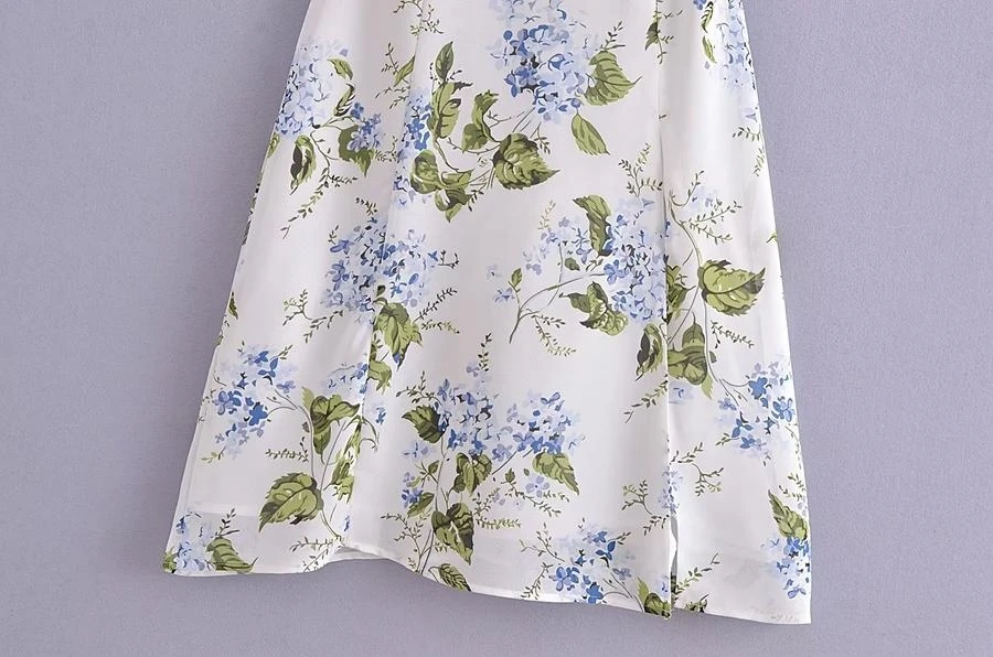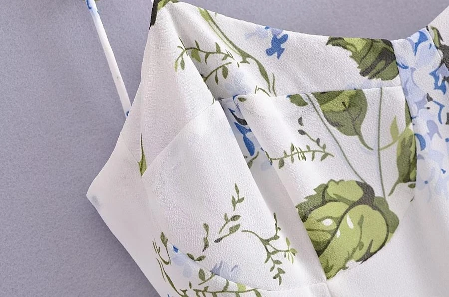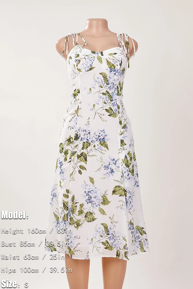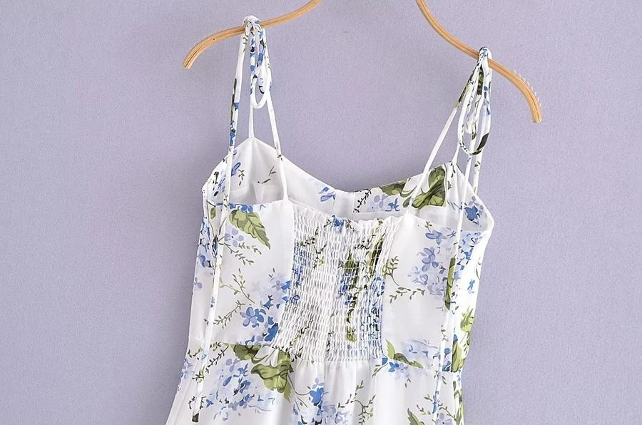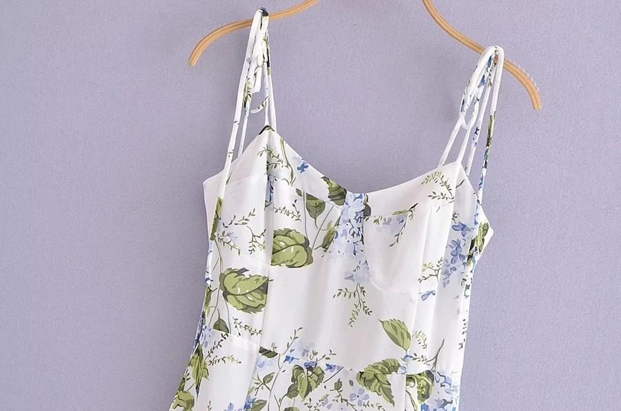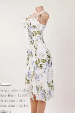Sexy slight stretch sling shirring high slit print midi dress size run small