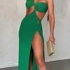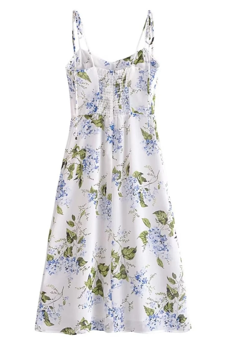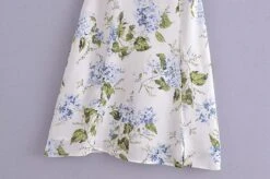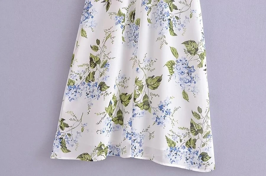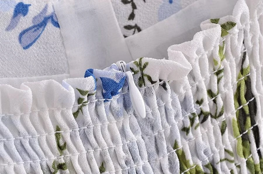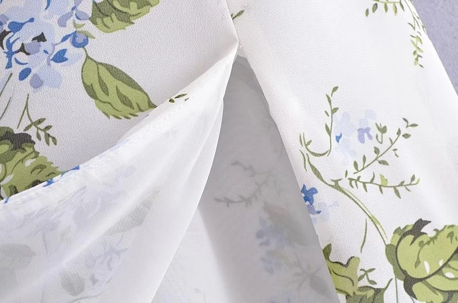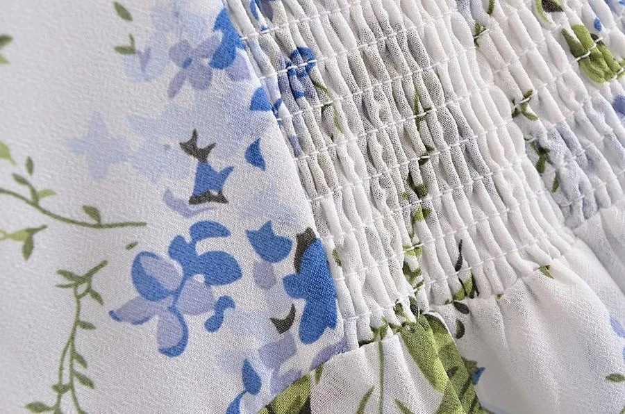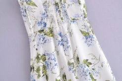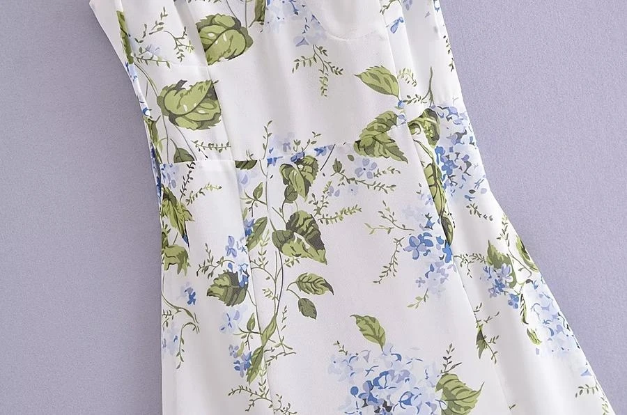 Sexy slight stretch sling shirring high slit print midi dress size run small