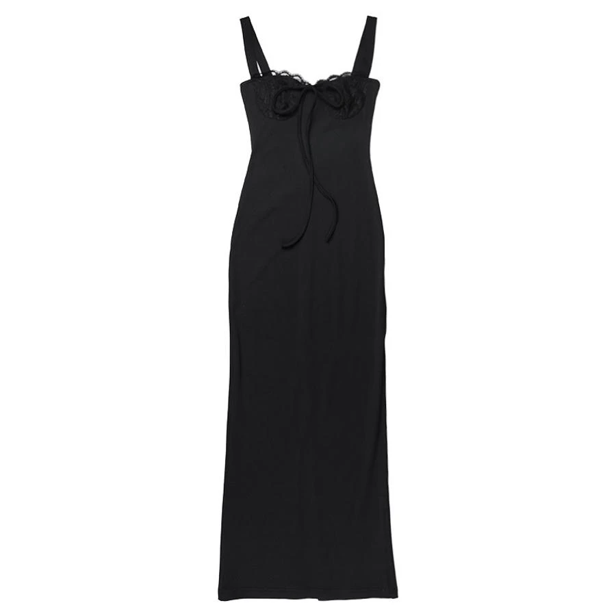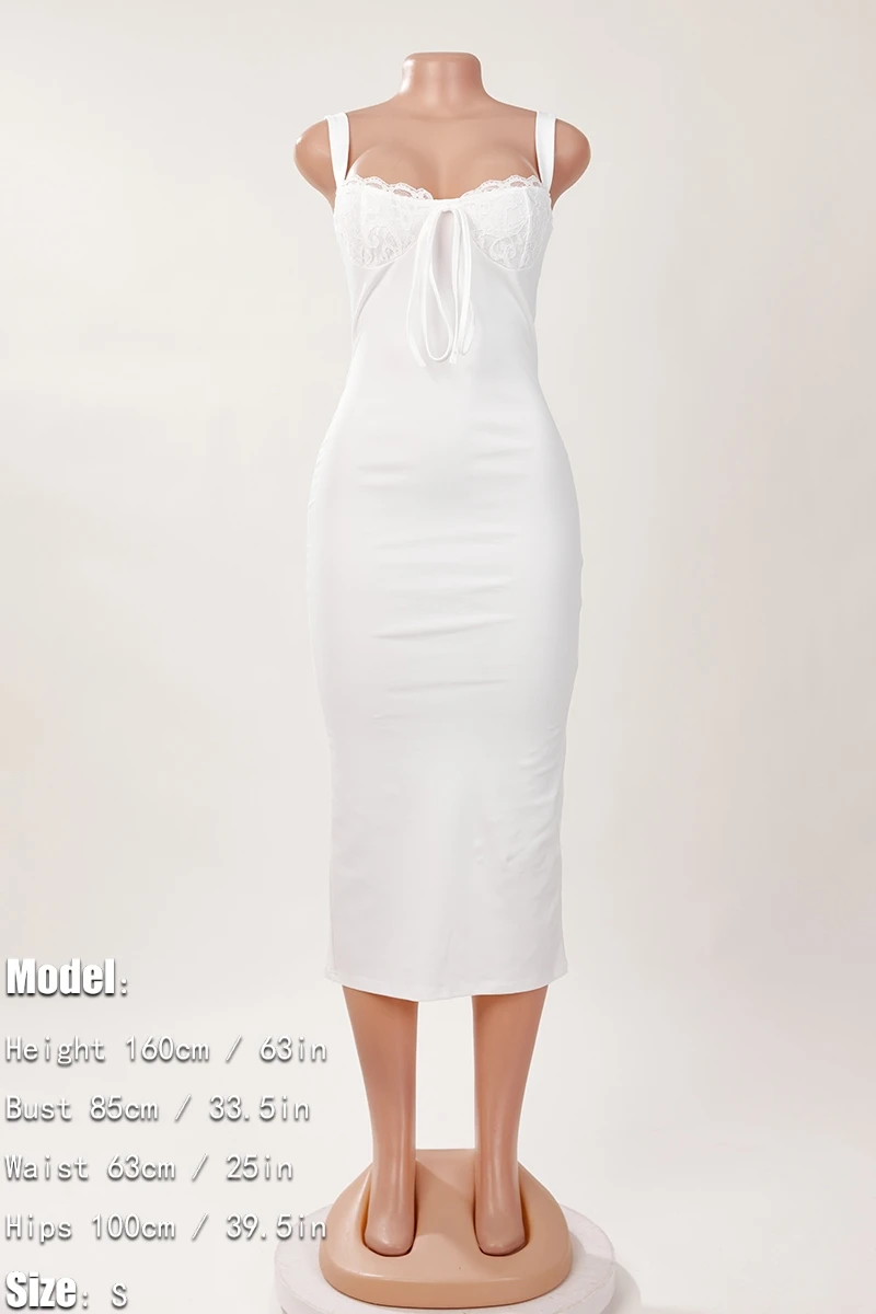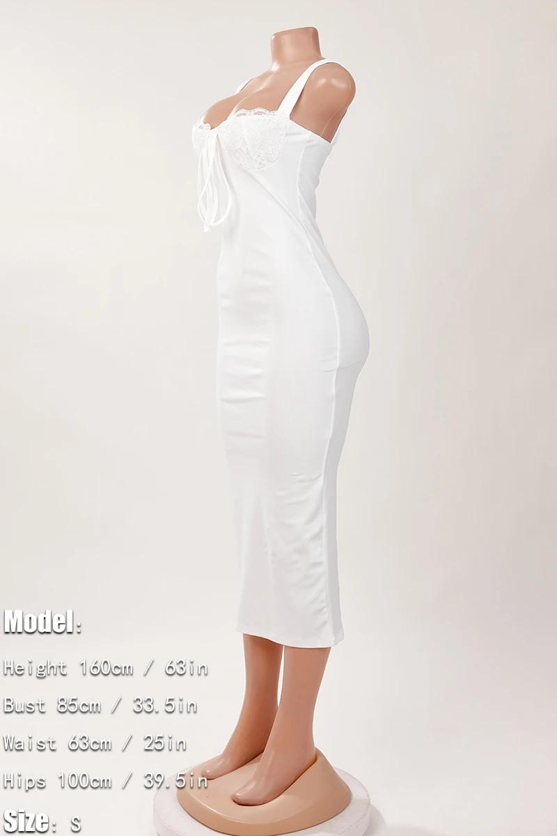 Sexy slight stretch slit lace midi dress