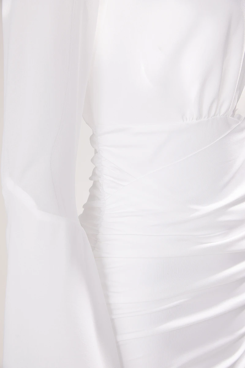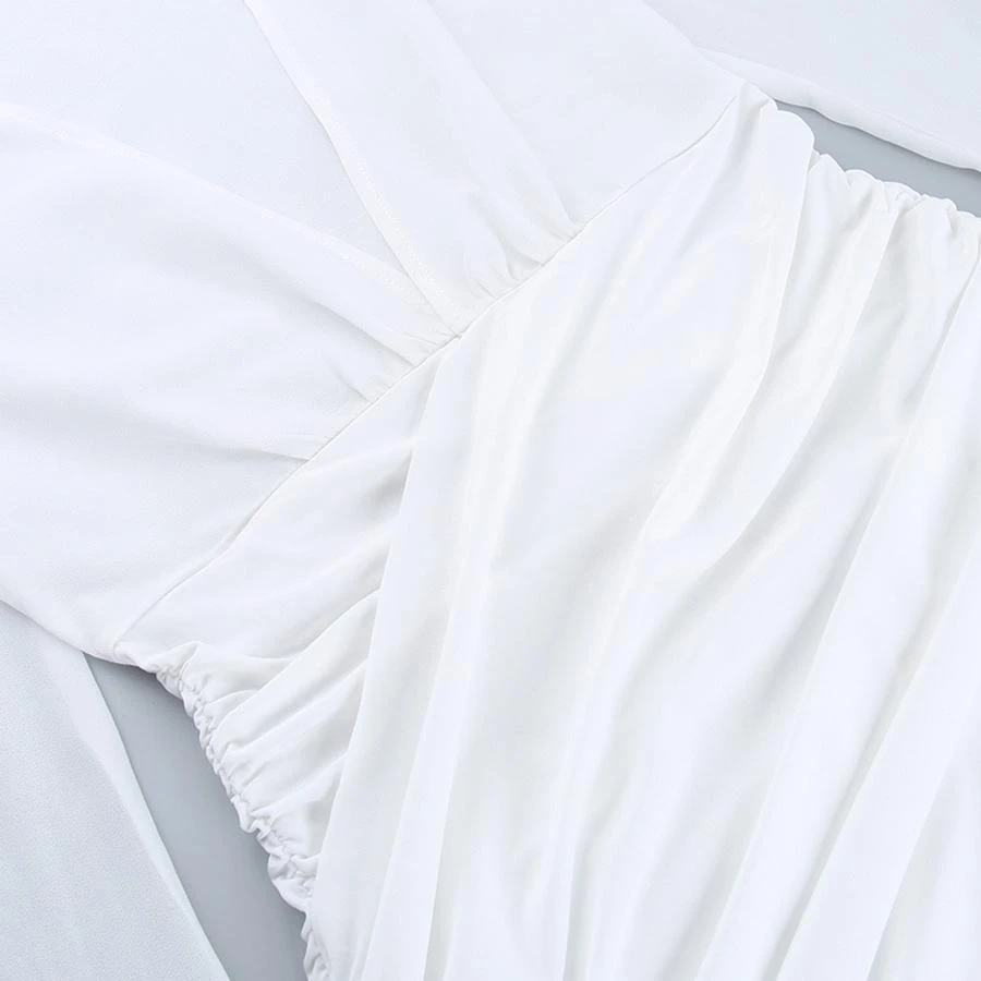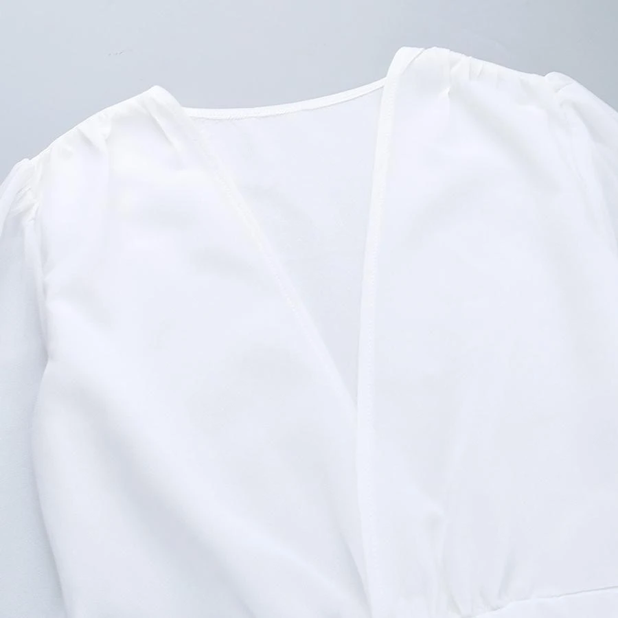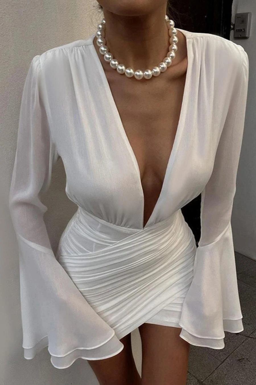 Sexy slight stretch solid color deep v tight shirring mini dress