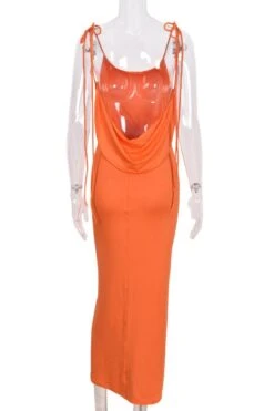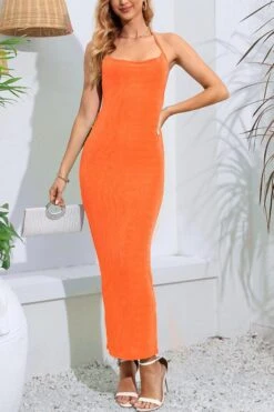 Sexy slight stretch solid color halter-neck lace-up backless maxi dress