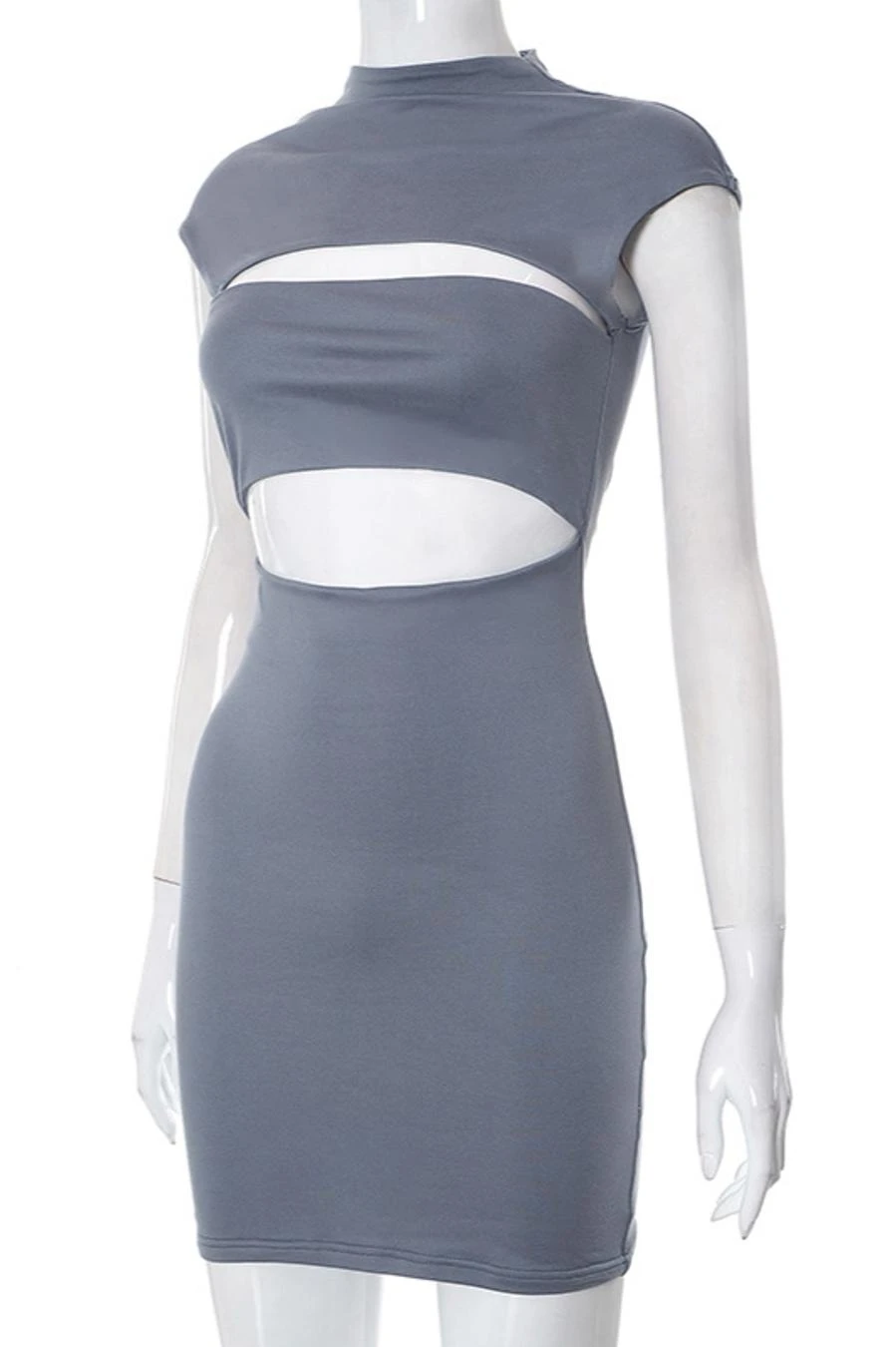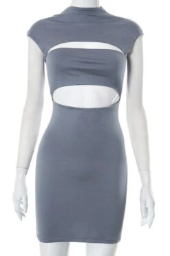 Sexy slight stretch solid color hollow slim mini dress