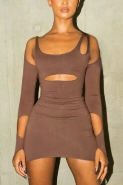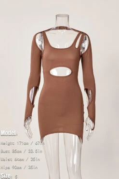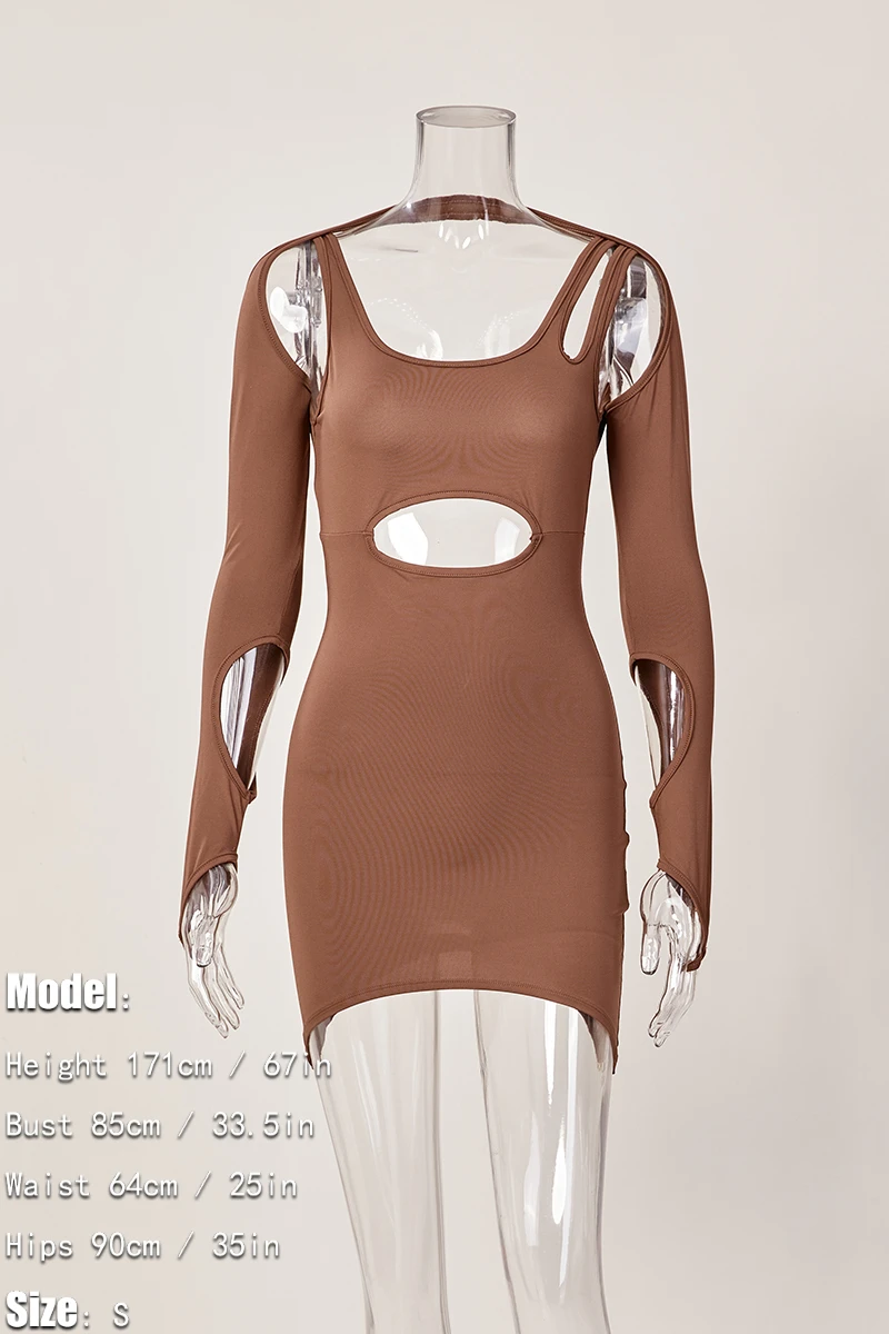 Sexy slight stretch solid color hollow two-piece set mini dress