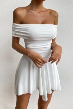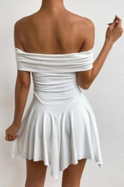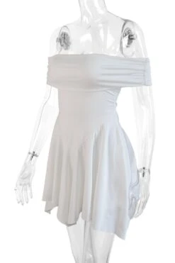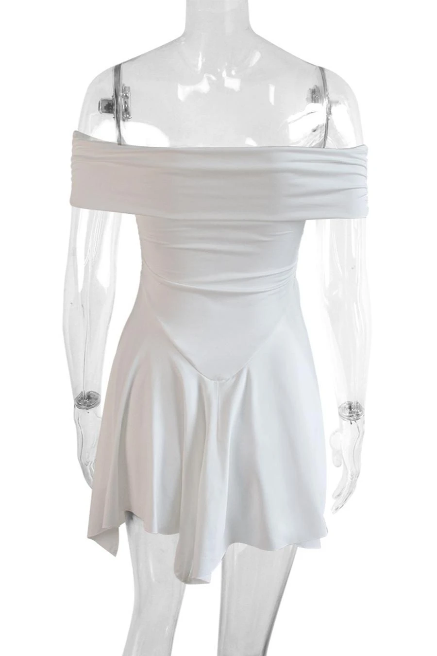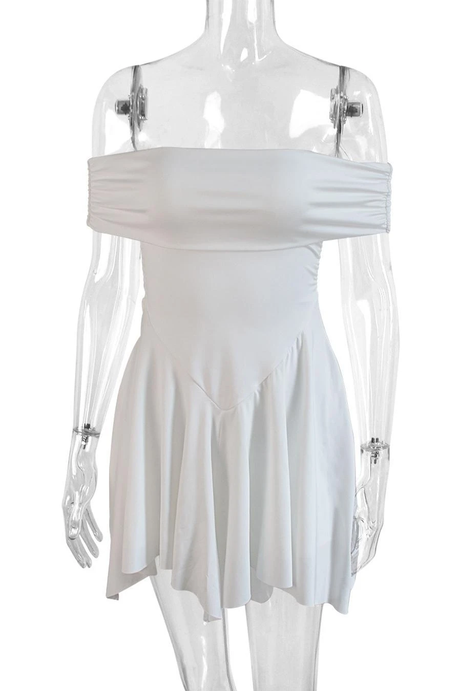 Sexy slight stretch solid color off shoulder irregular mini dress