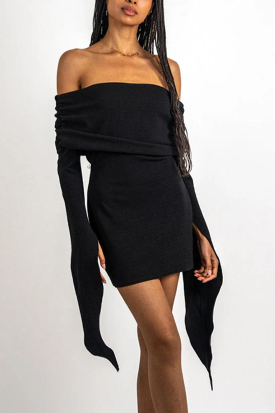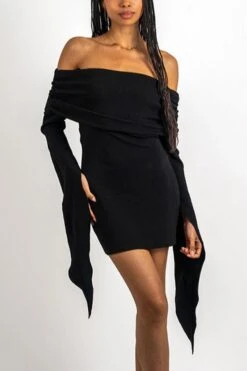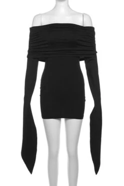 Sexy slight stretch solid color off shoulder slim mini dress
