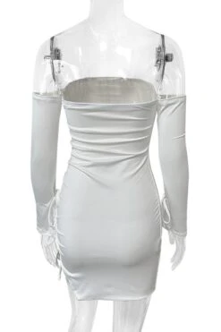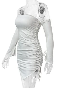 Sexy slight stretch solid color off shoulder slit drawstring mini dress