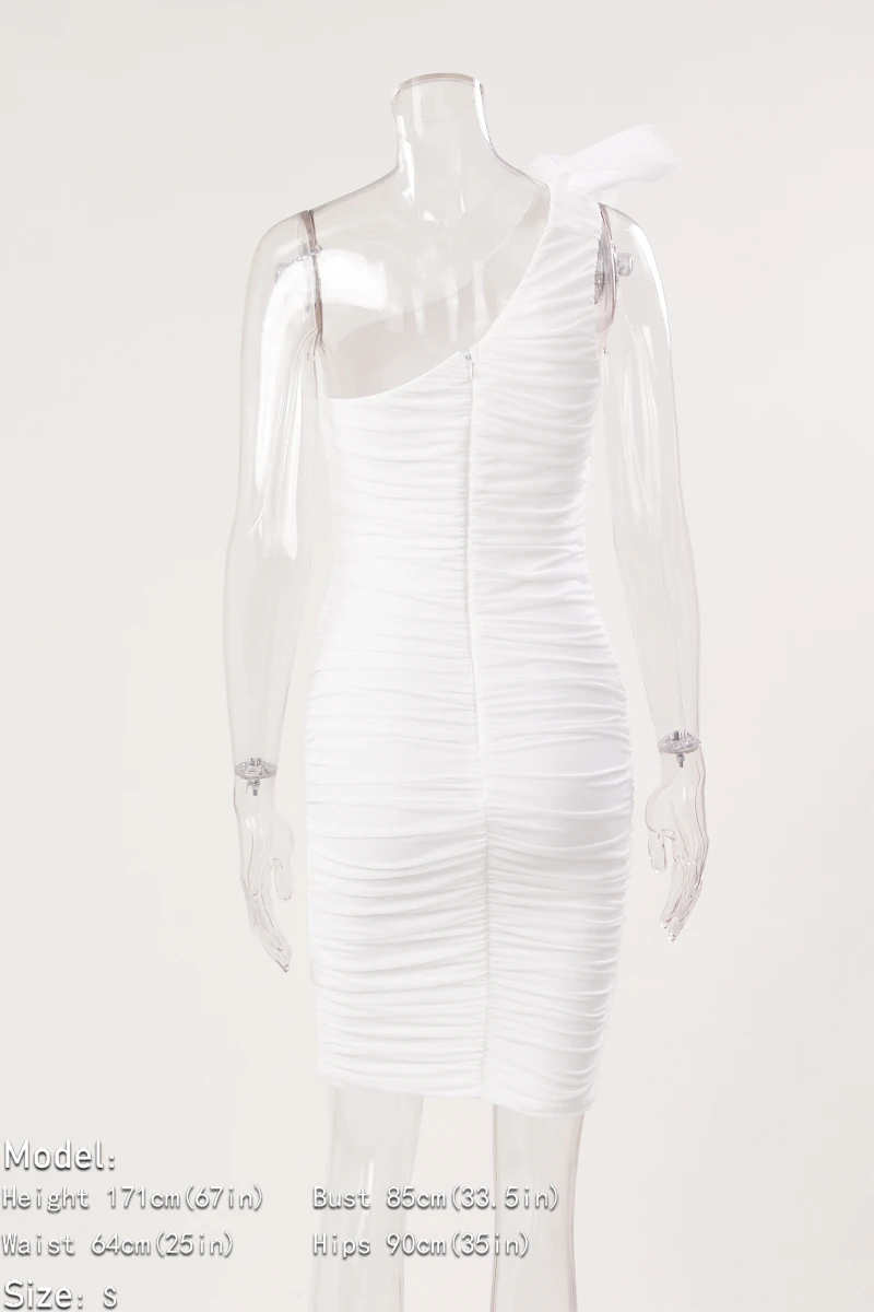 Sexy slight stretch solid color one-shoulder tight shirring zip-up mini dress