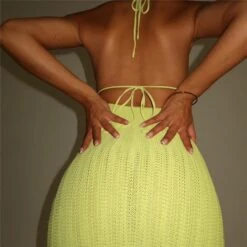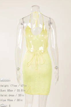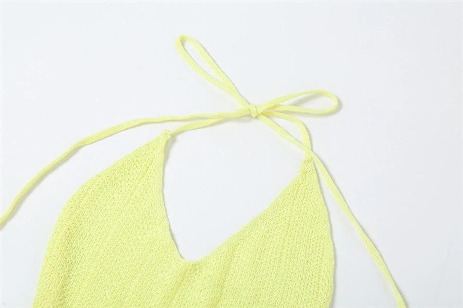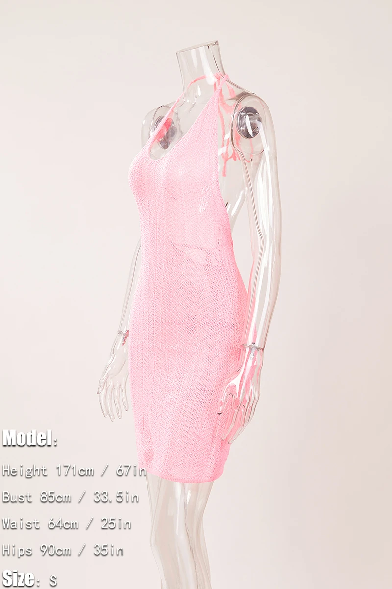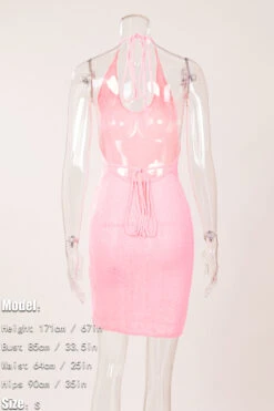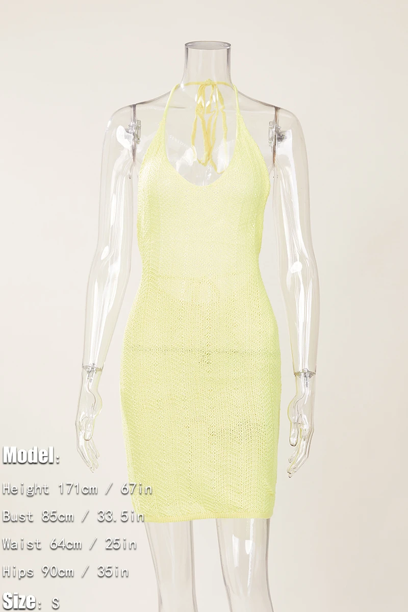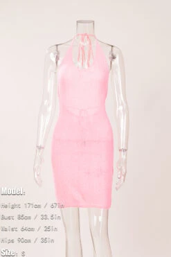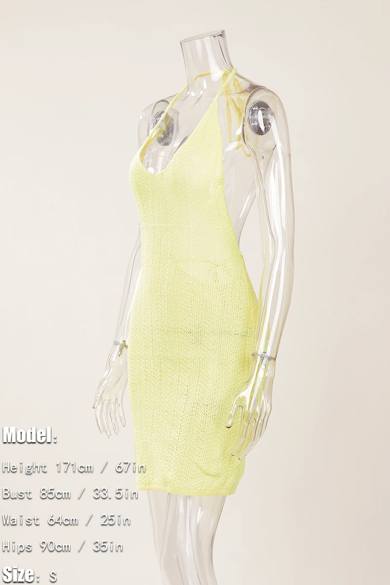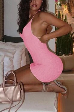 Sexy slight stretch solid color ribbed knit halter-neck sling slim mini dress