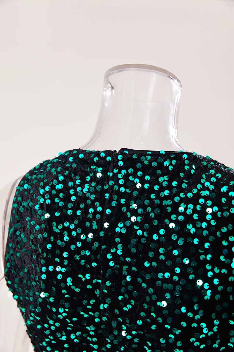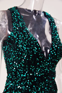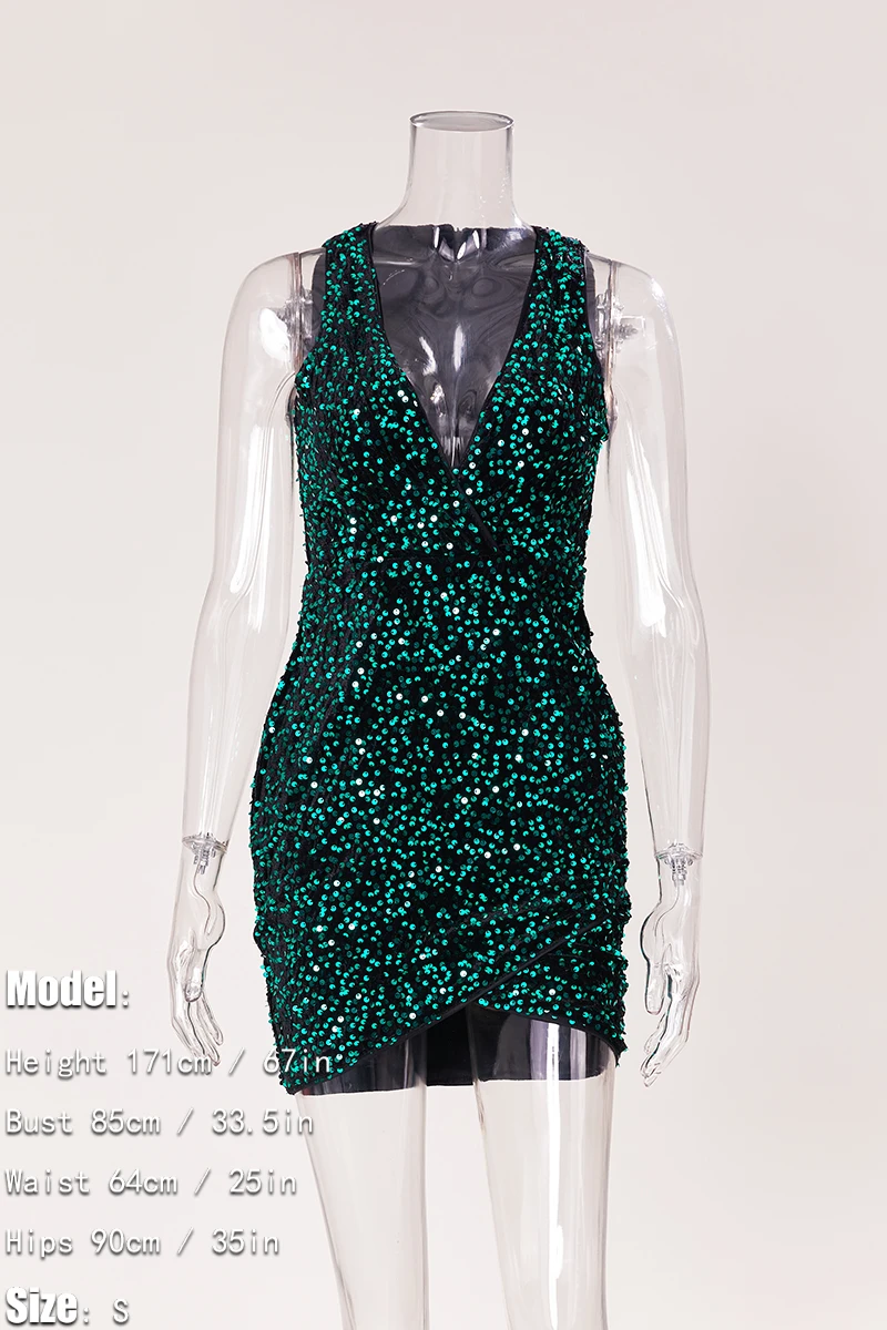 Sexy slight stretch solid color sequins deep v slim mini dress