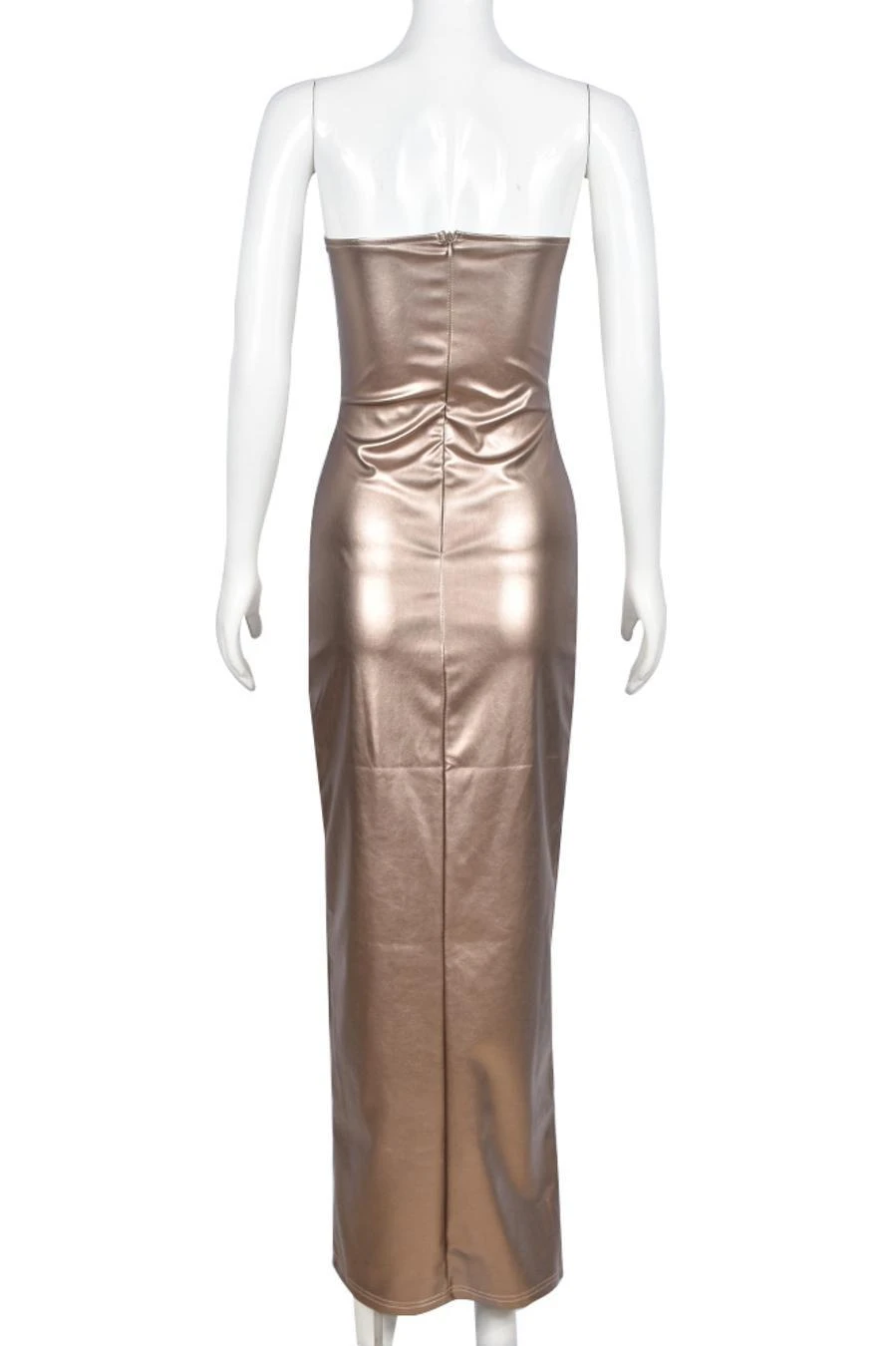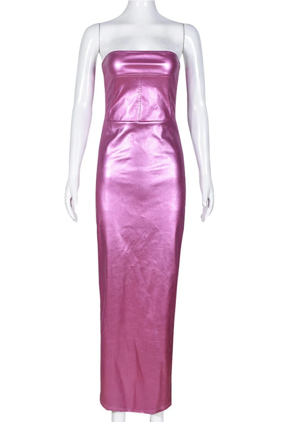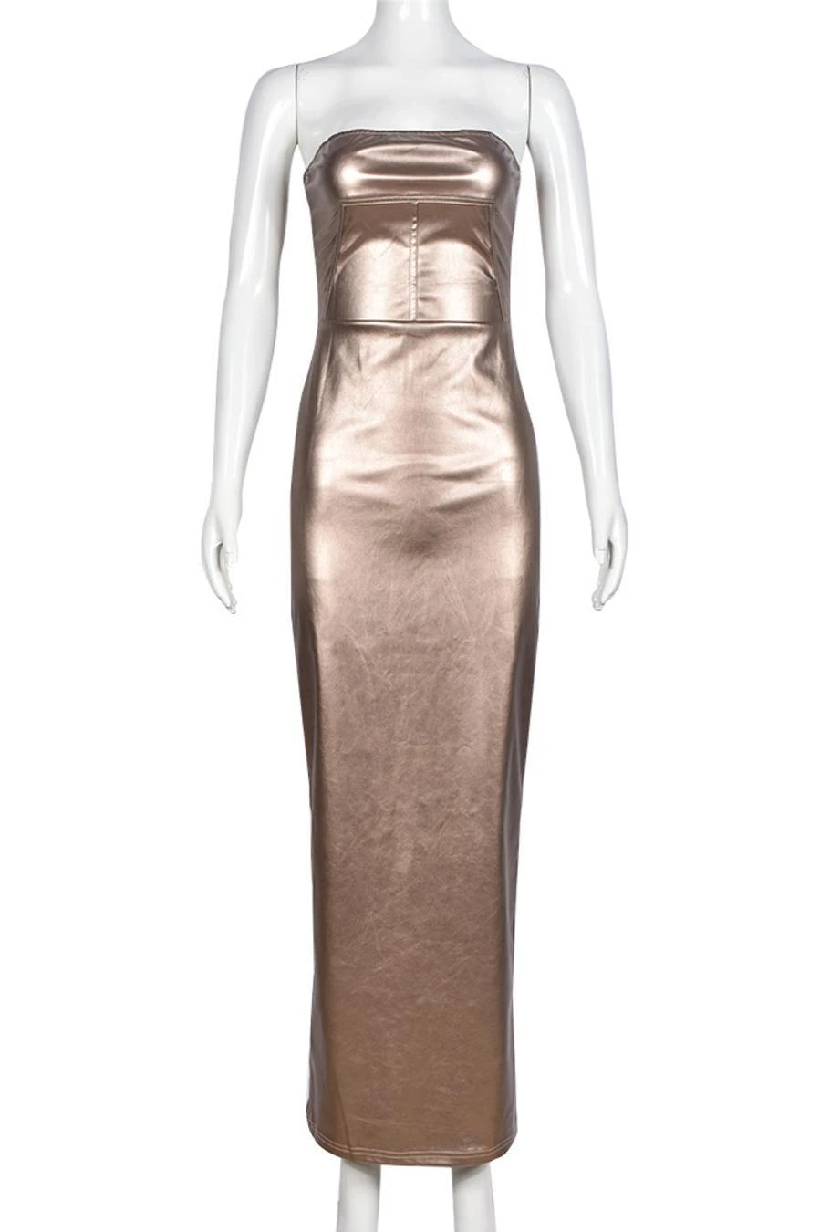 Sexy slight stretch solid color tube design zip-up maxi dress