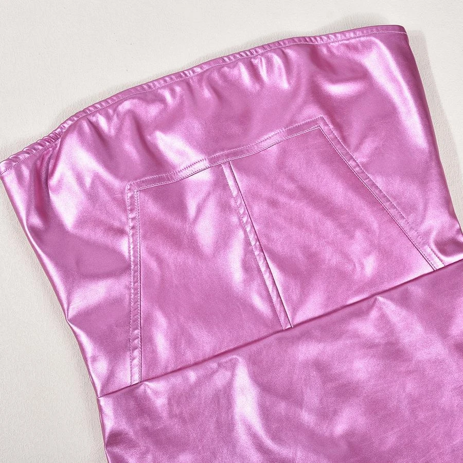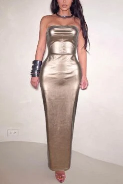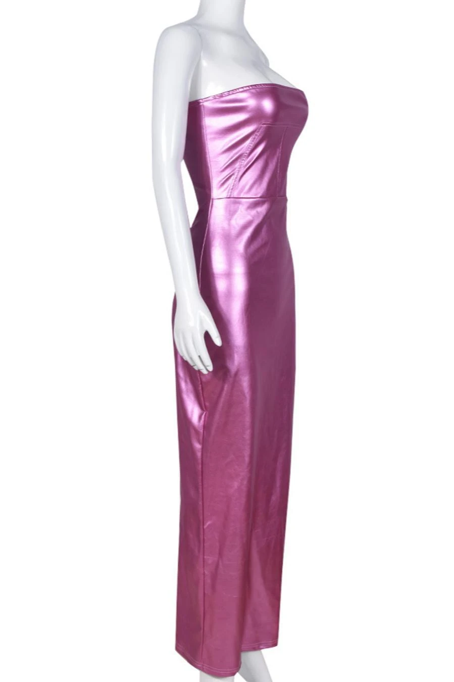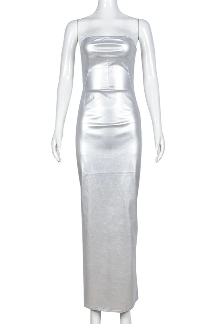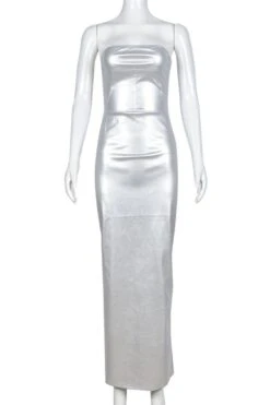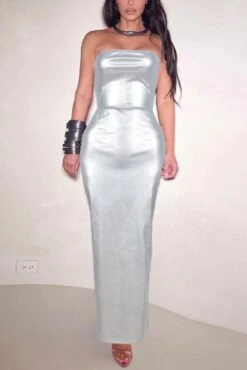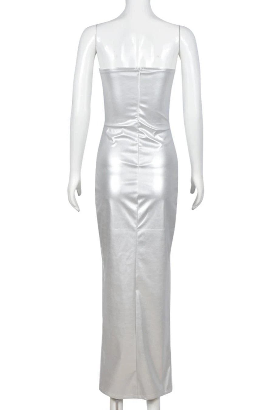 Sexy slight stretch solid color tube design zip-up maxi dress