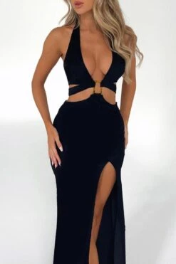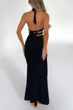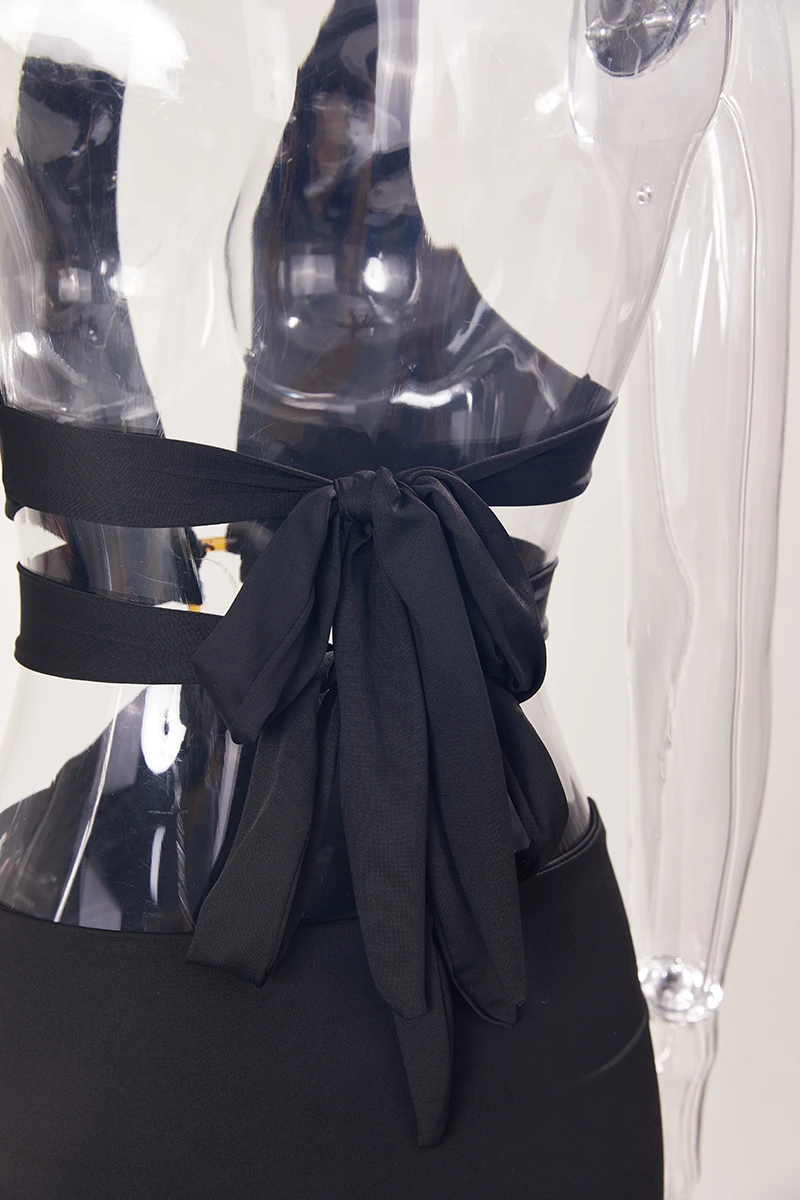 Sexy slight stretch solid lace-up backless high slit maxi dress