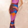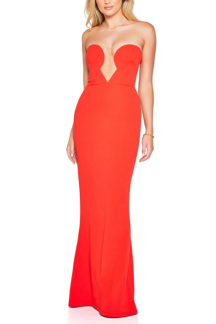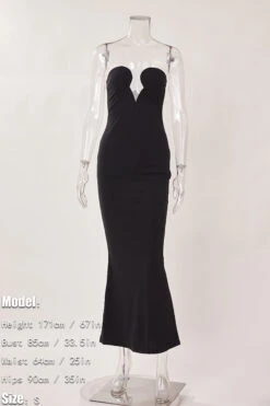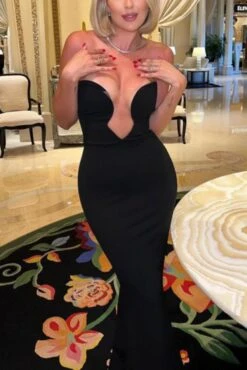 Sexy slight stretch solid mesh deep-v mermaid maxi dress