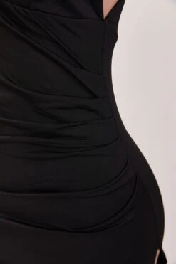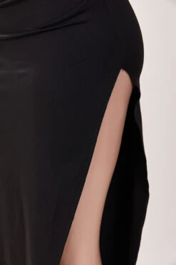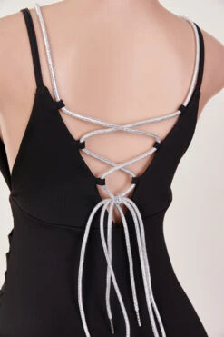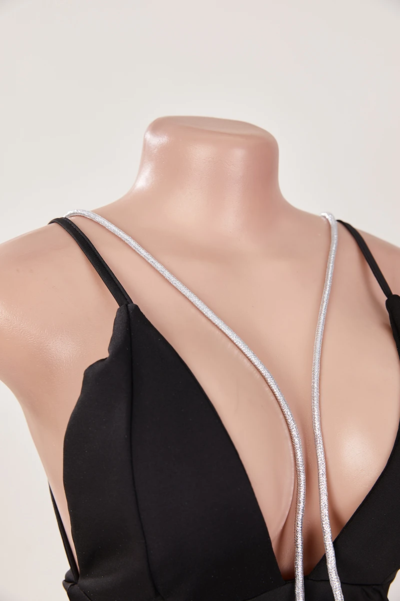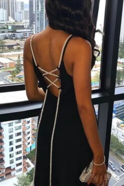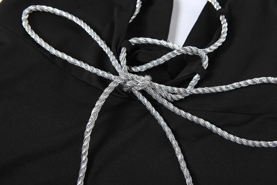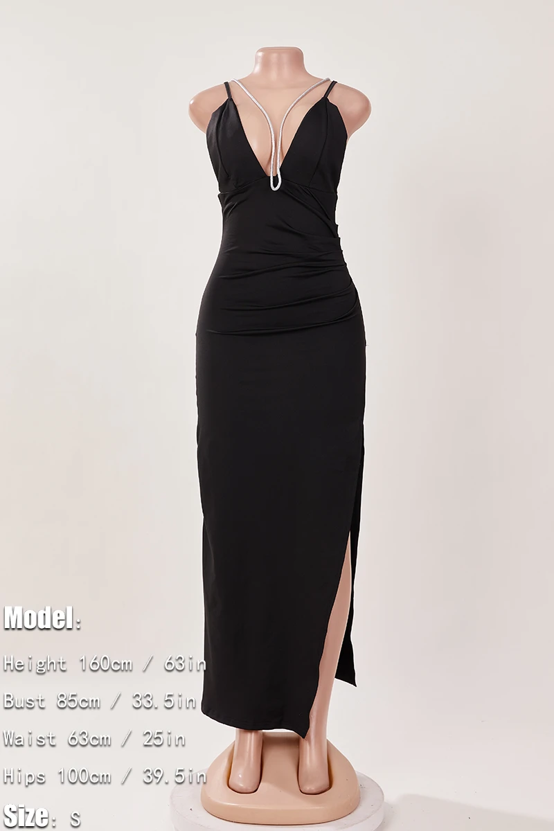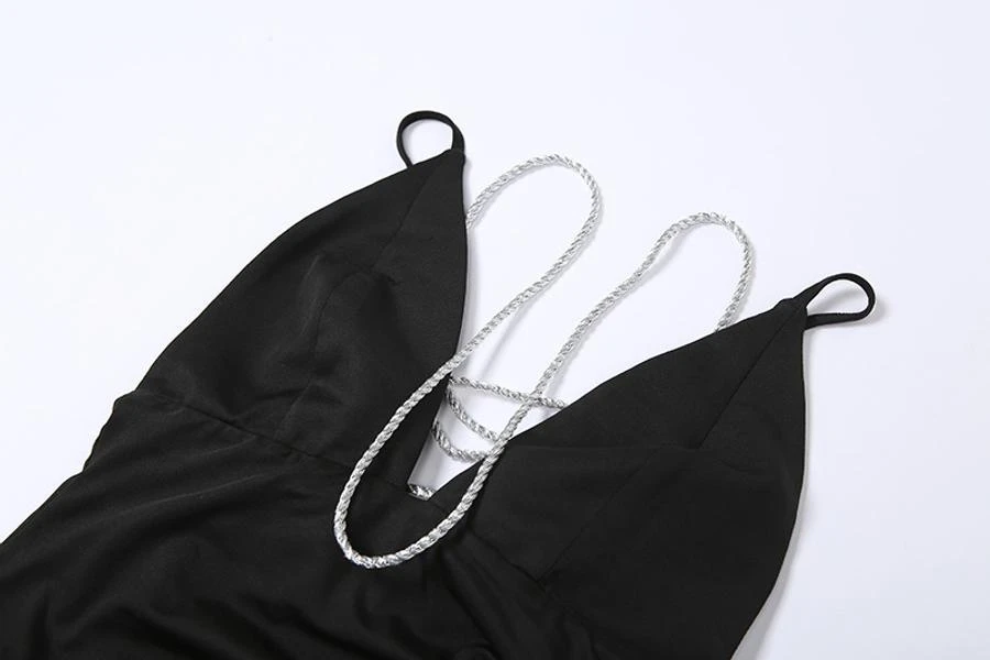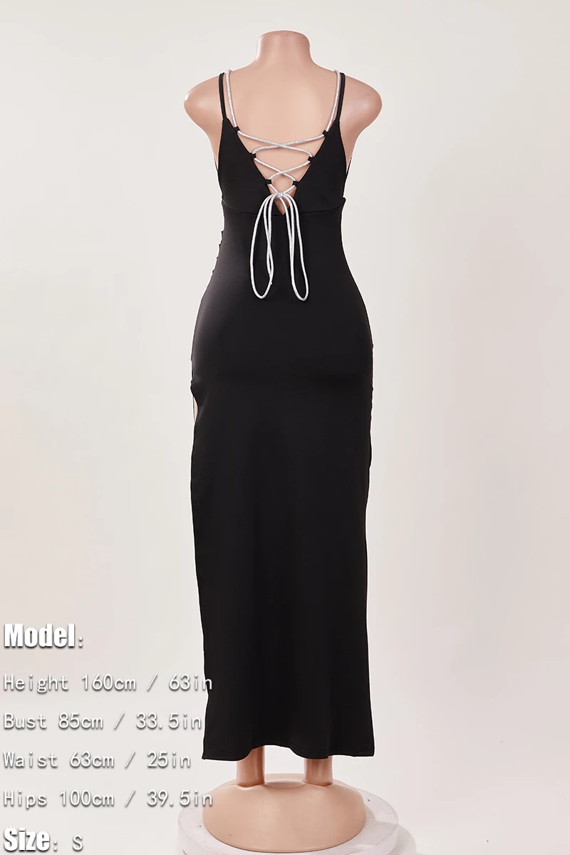 Sexy slight stretch solid sling deep v lace-up backless high slit maxi dress
