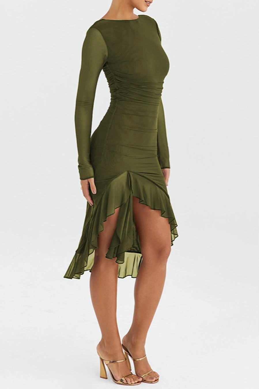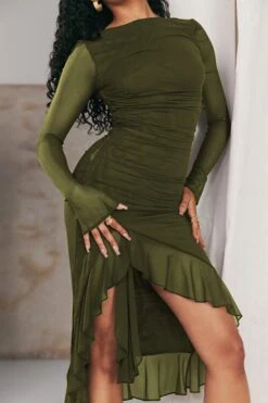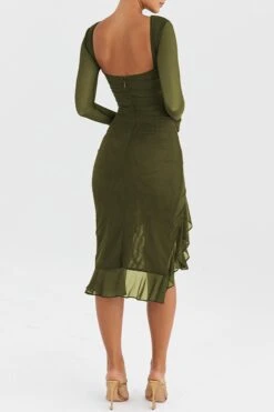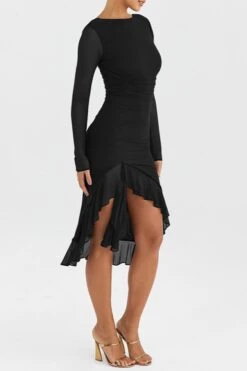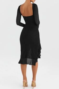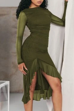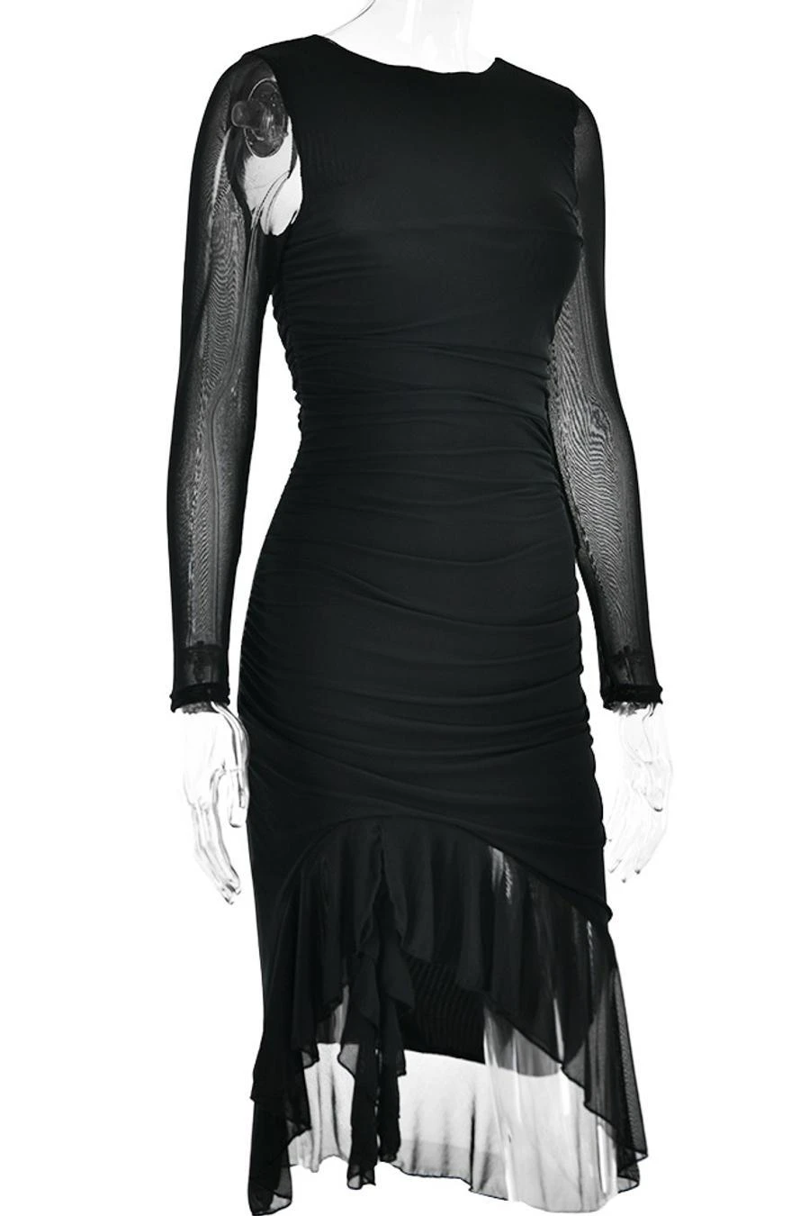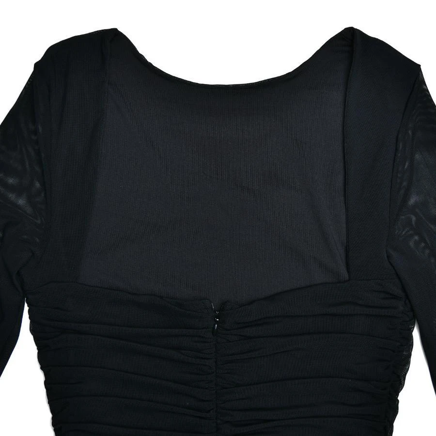 Sexy slight stretch stitching mesh crew neck backless midi dress