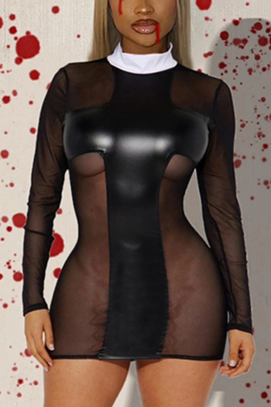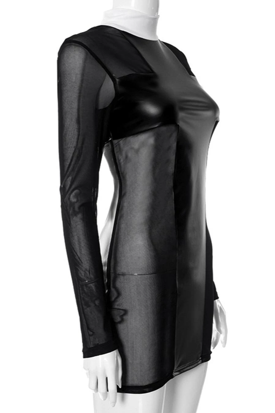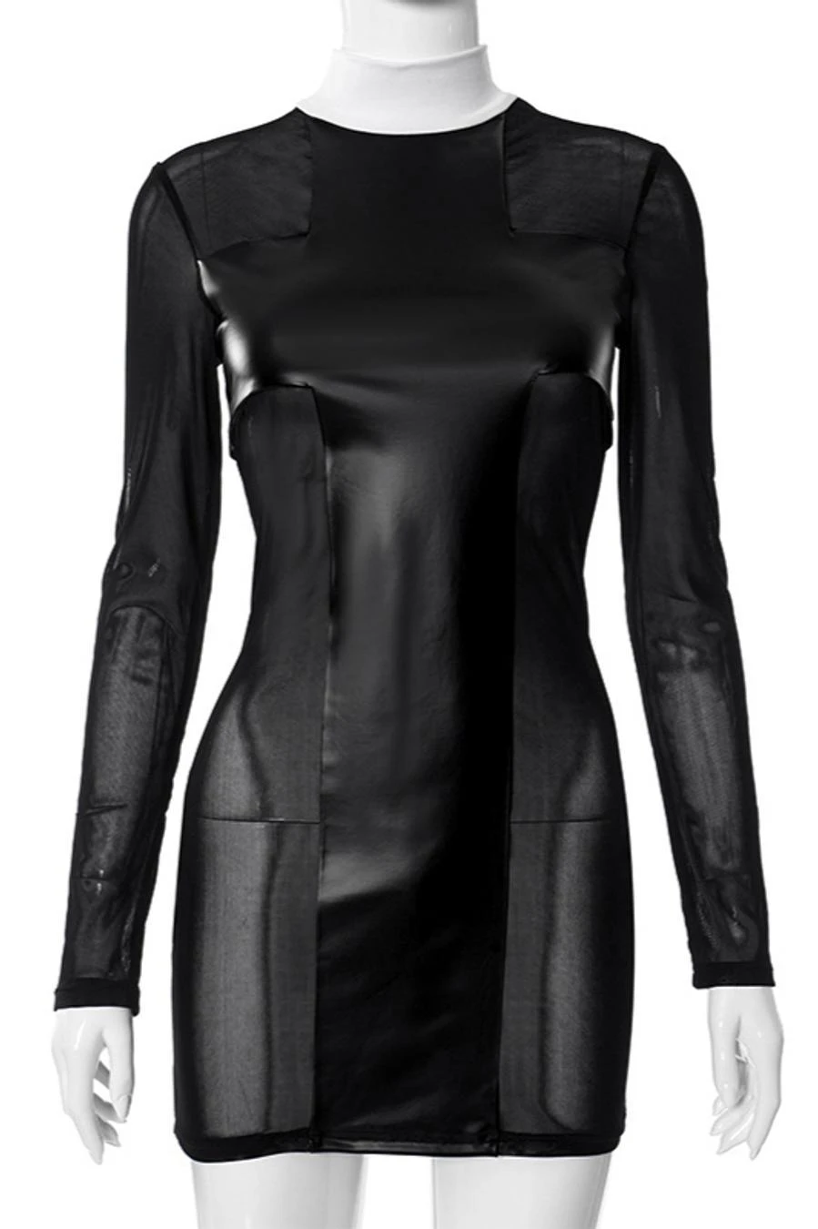 Sexy slight stretch stitching see-through mesh slim mini dress