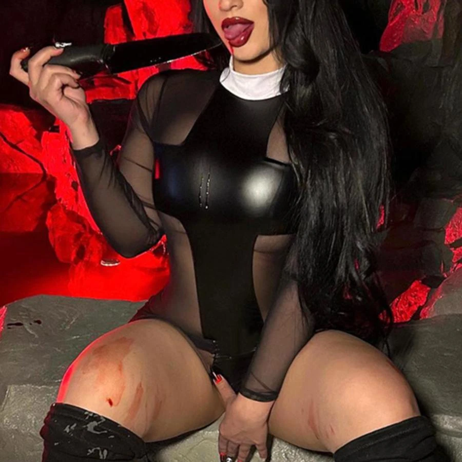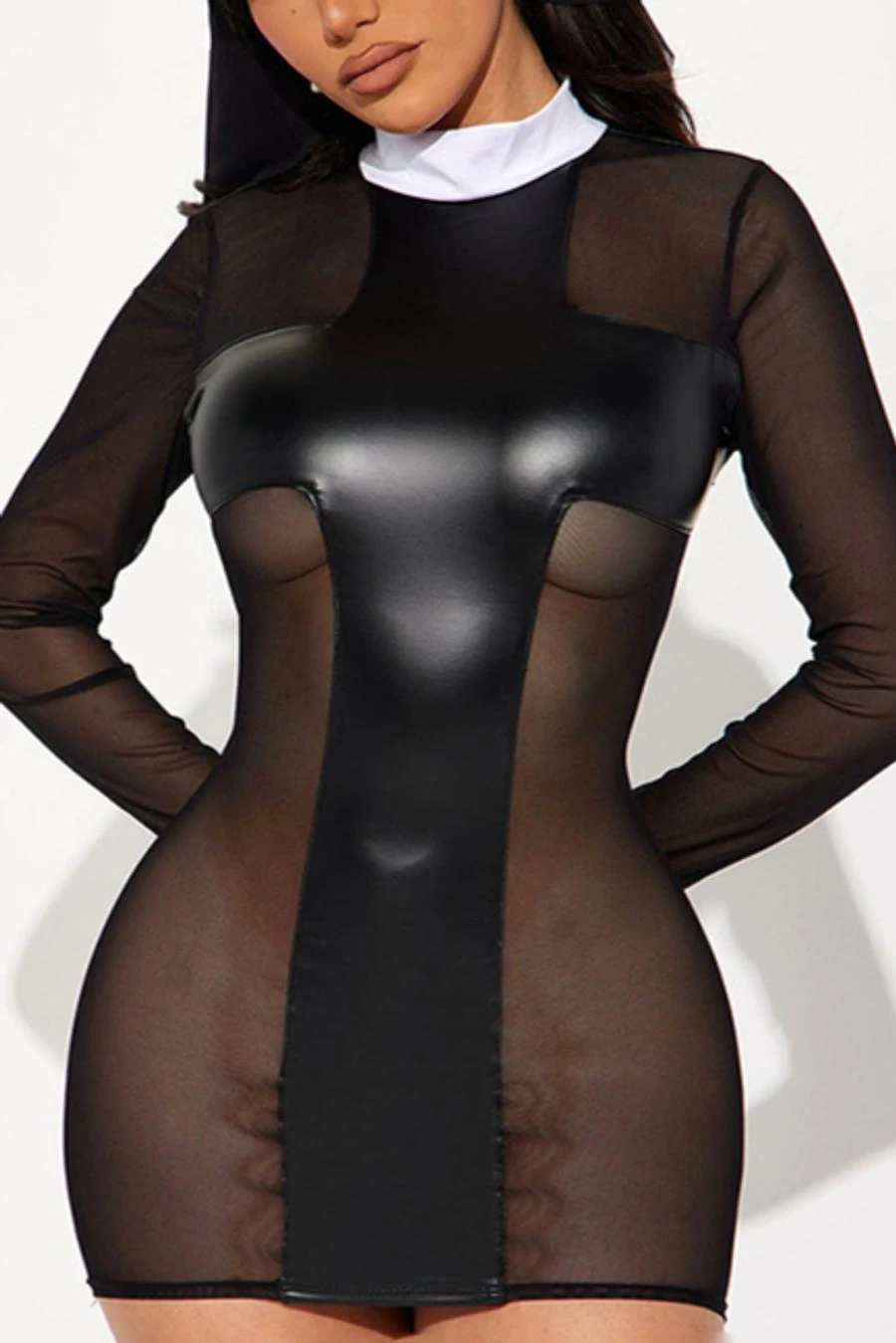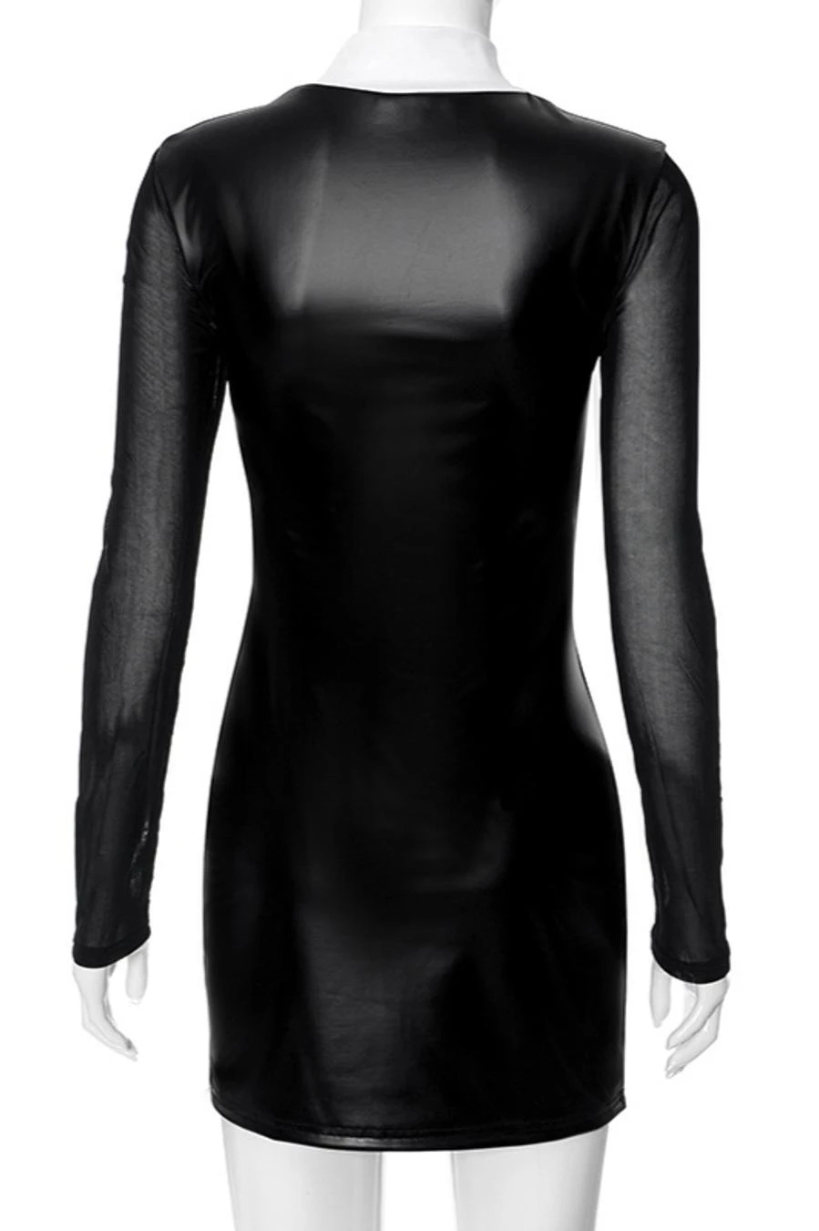 Sexy slight stretch stitching see-through mesh slim mini dress