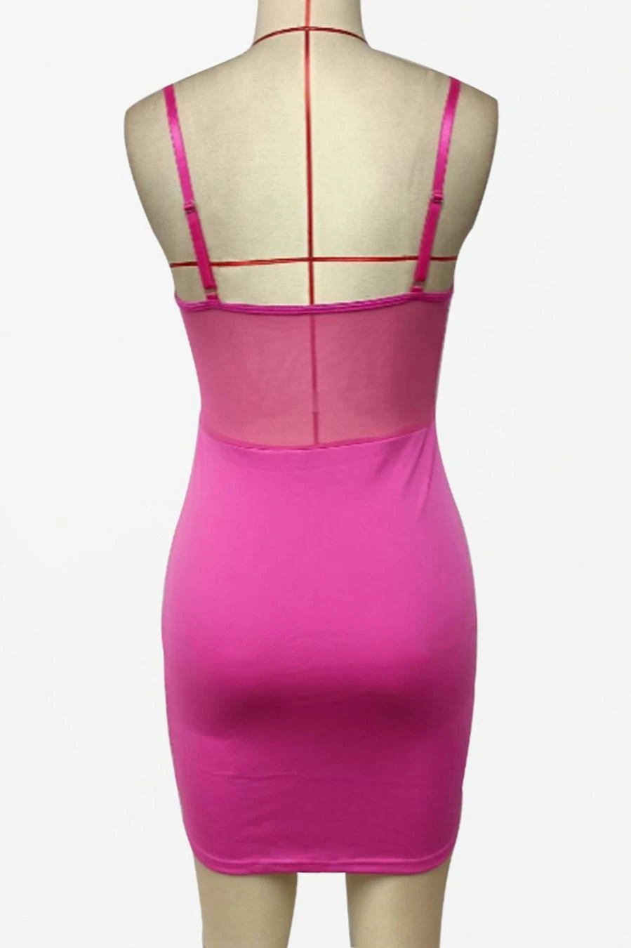 Sexy slight stretch stitching see-through mesh sling slim mini dress
