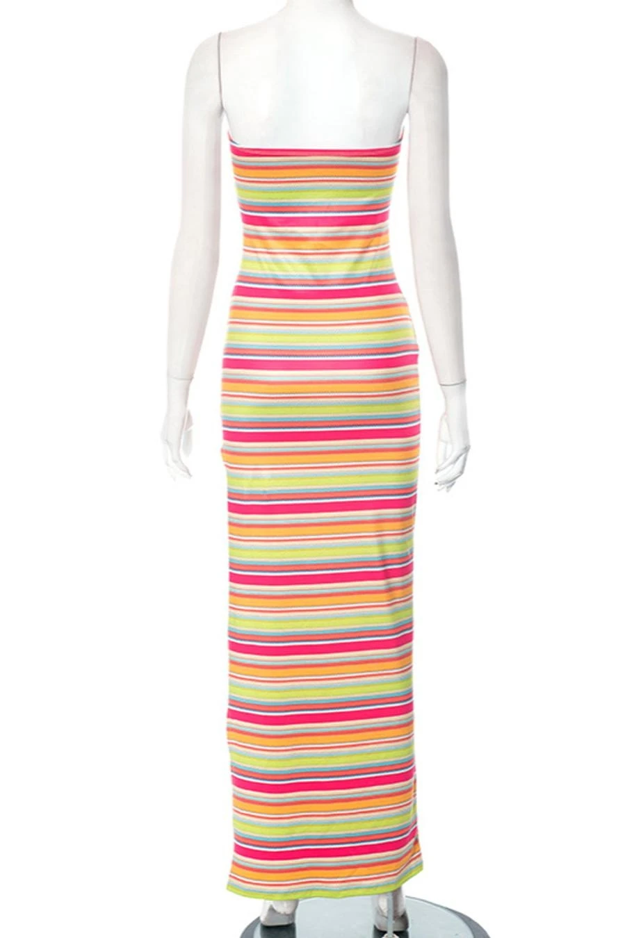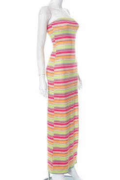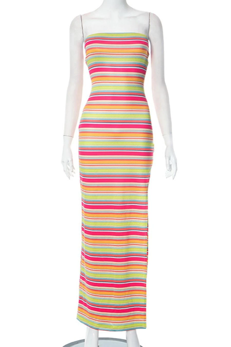 Sexy slight stretch stripe printing tube design high slit maxi dress