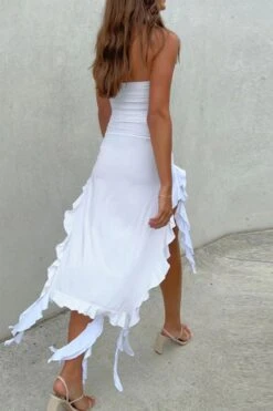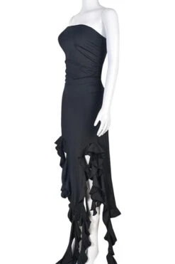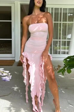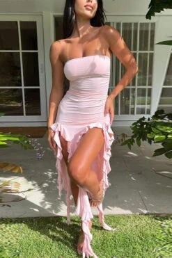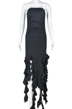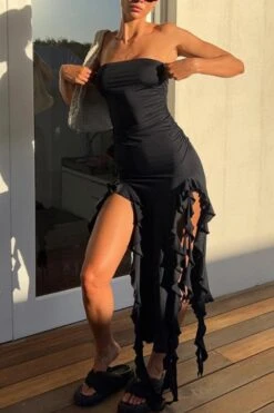 Sexy slight stretch tube design ruffle tassel maxi dress