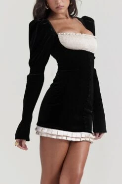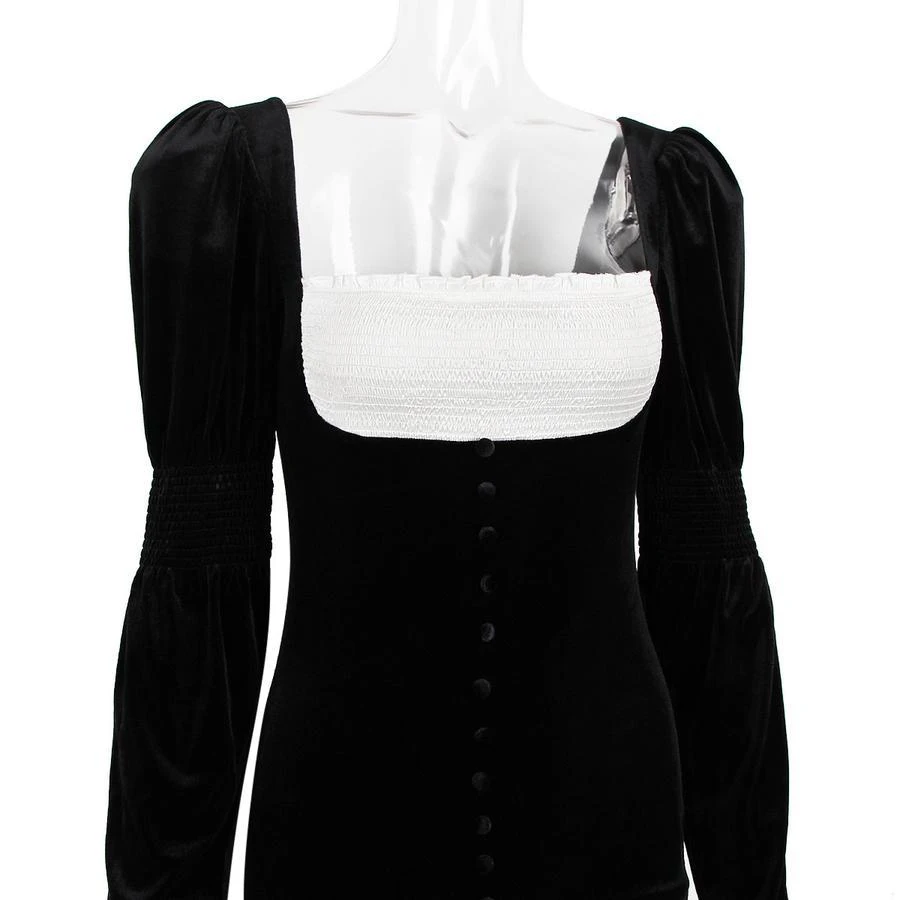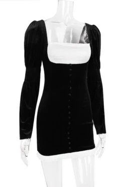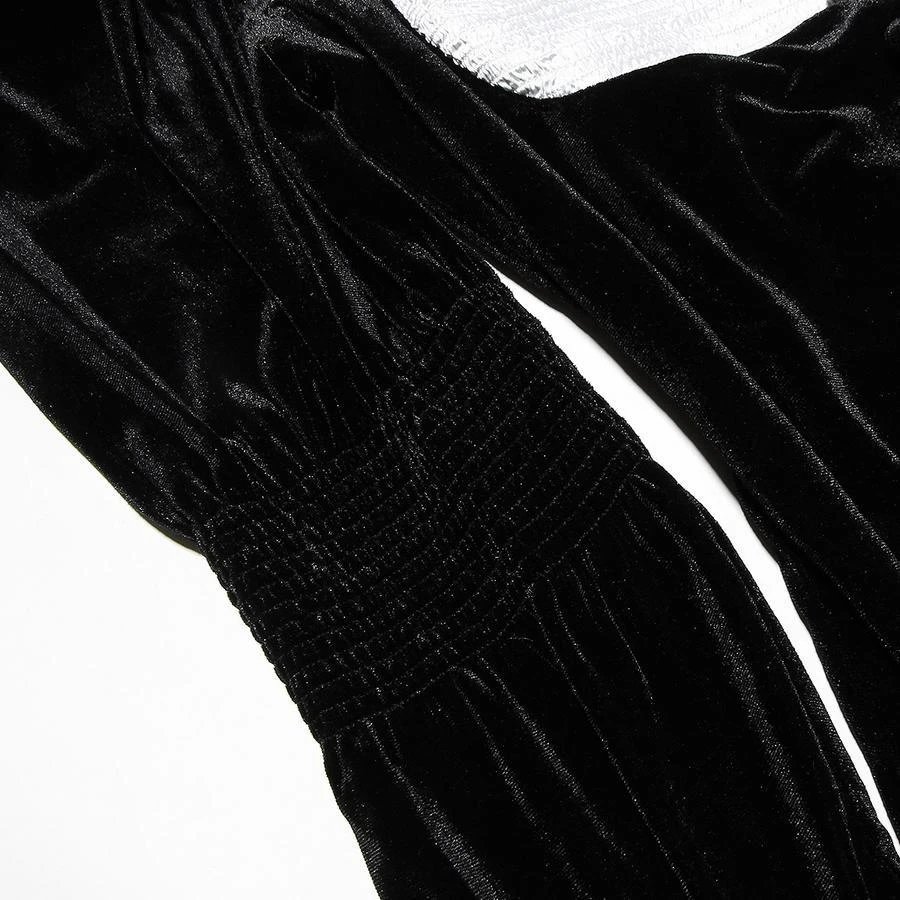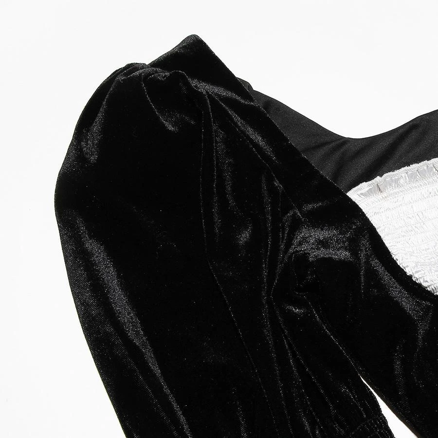 Sexy slight stretch velvet patchwork tight shoulder pads mini dress
