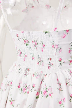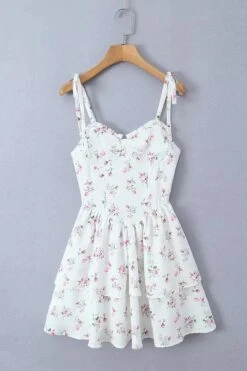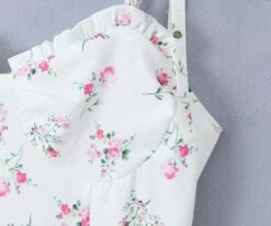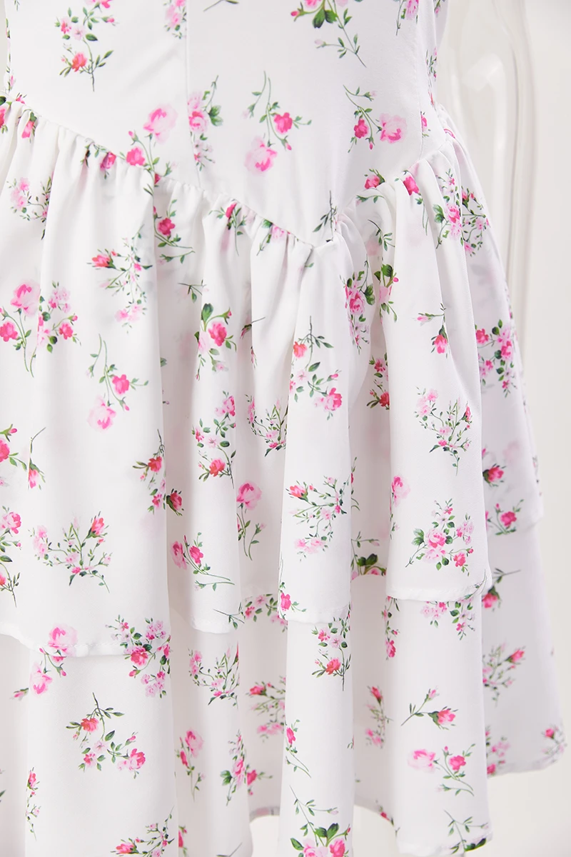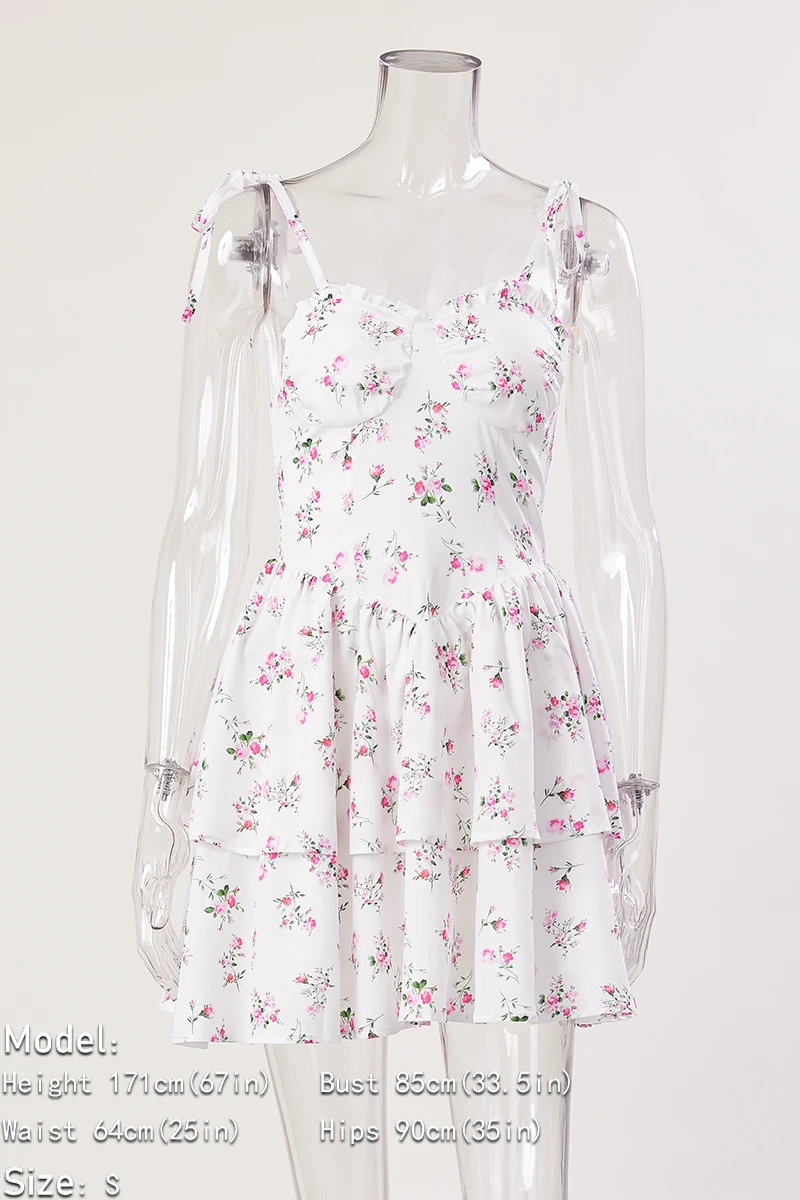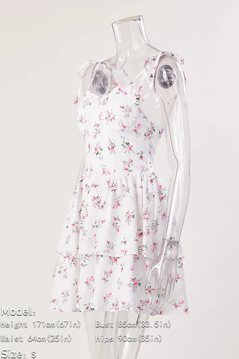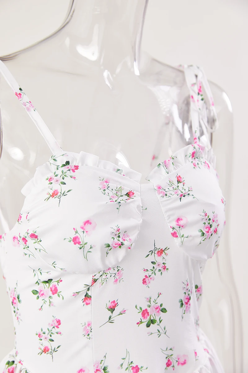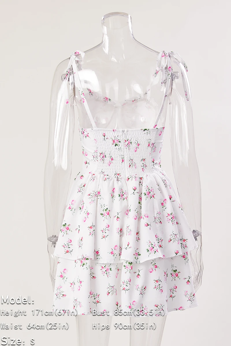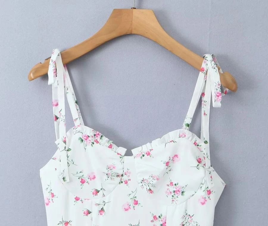 Sexy slight stretch white print strappy suspenders mini dress(size run small)