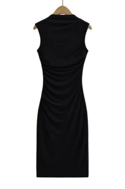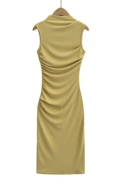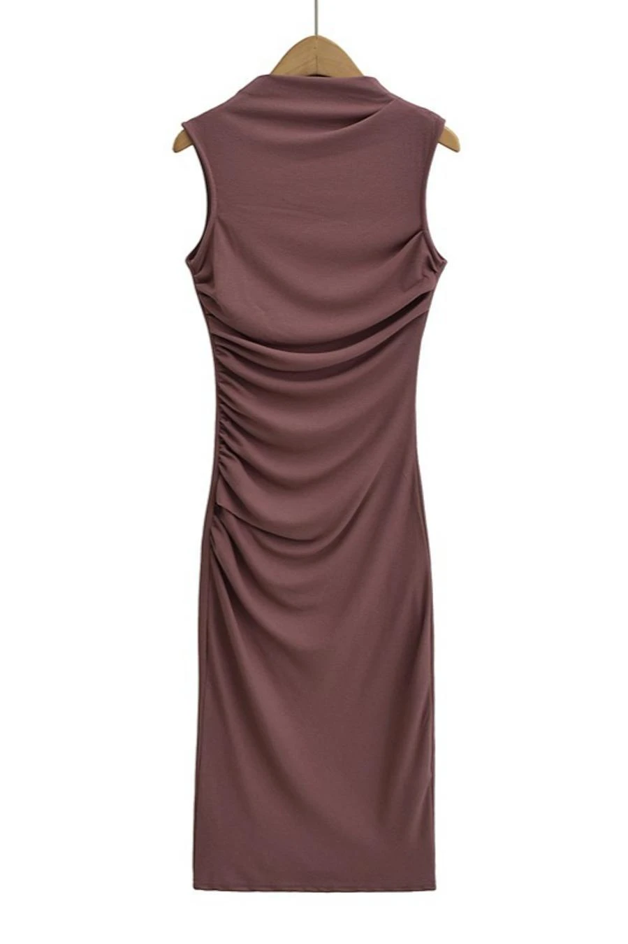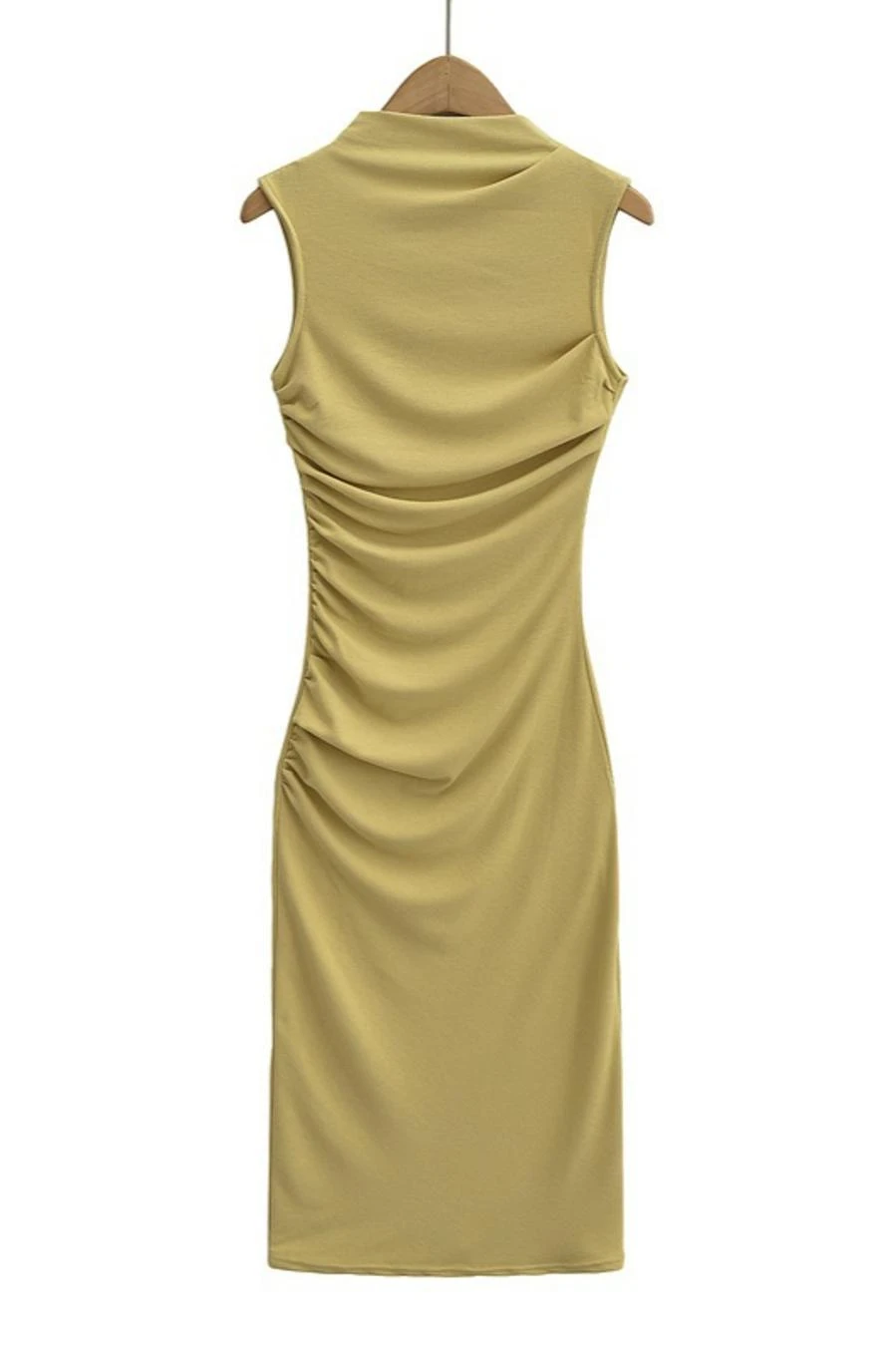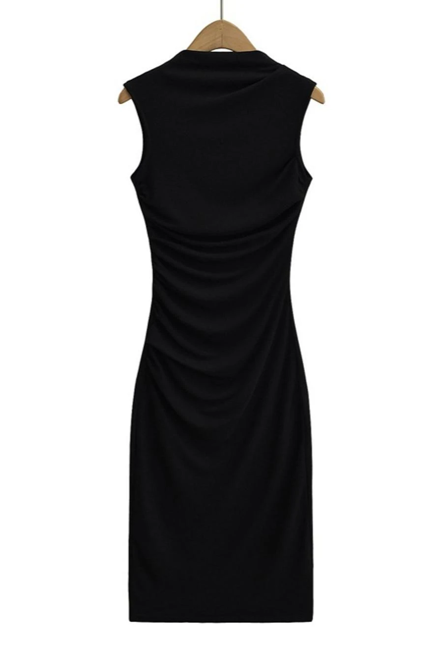 Sexy slight stretch half high neck slim sleeveless midi dress(size run small)