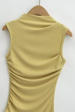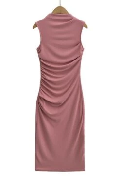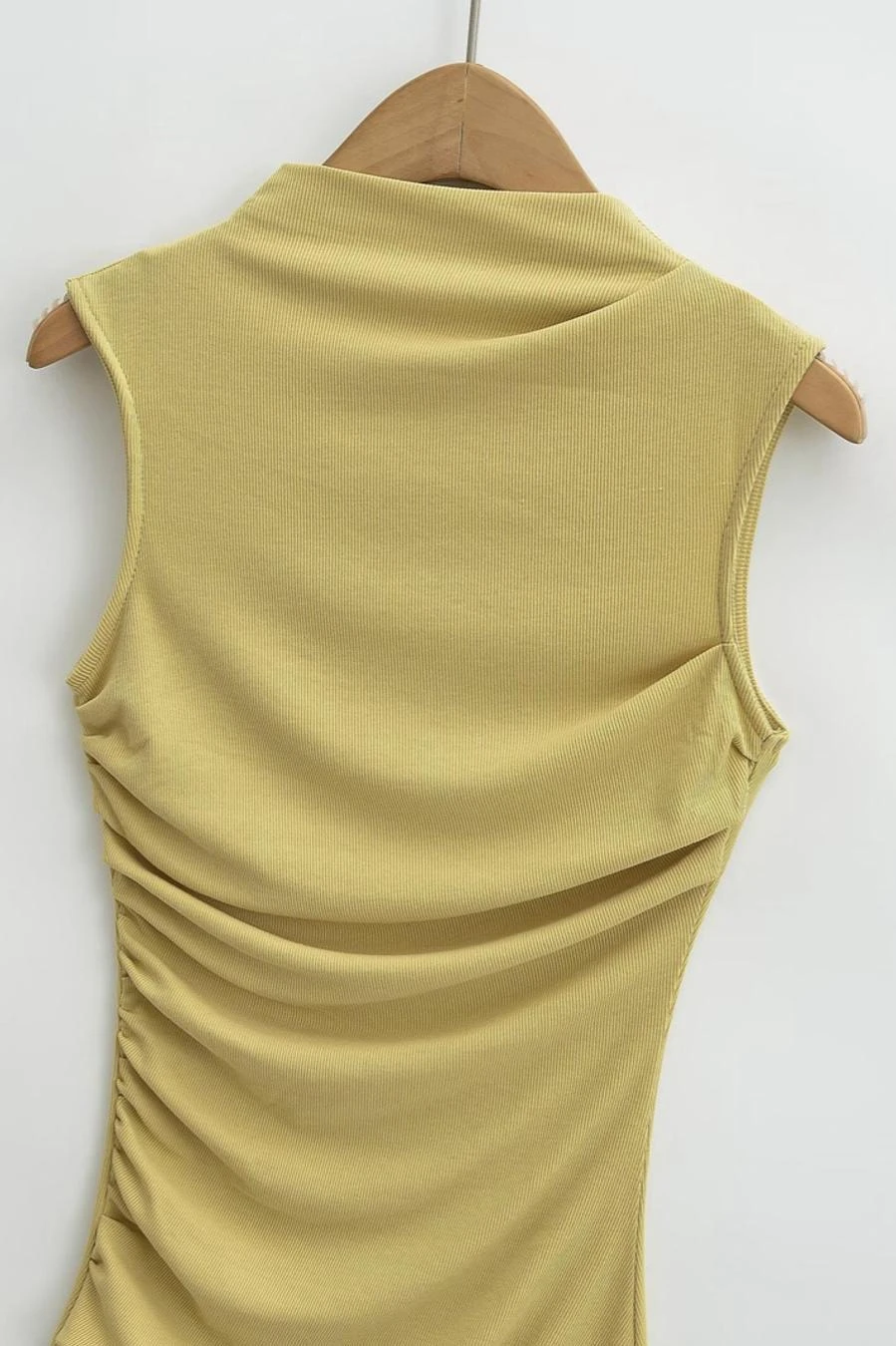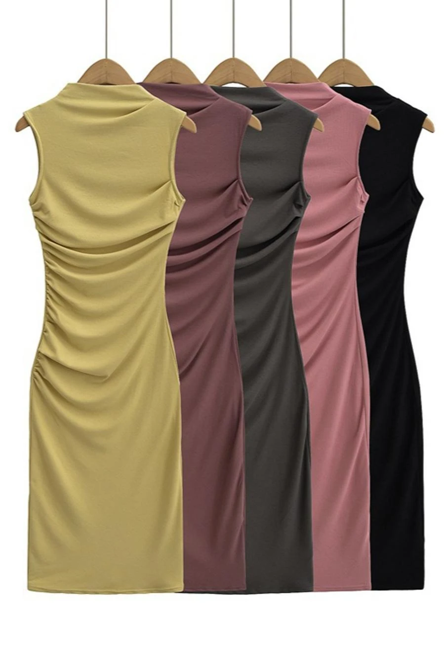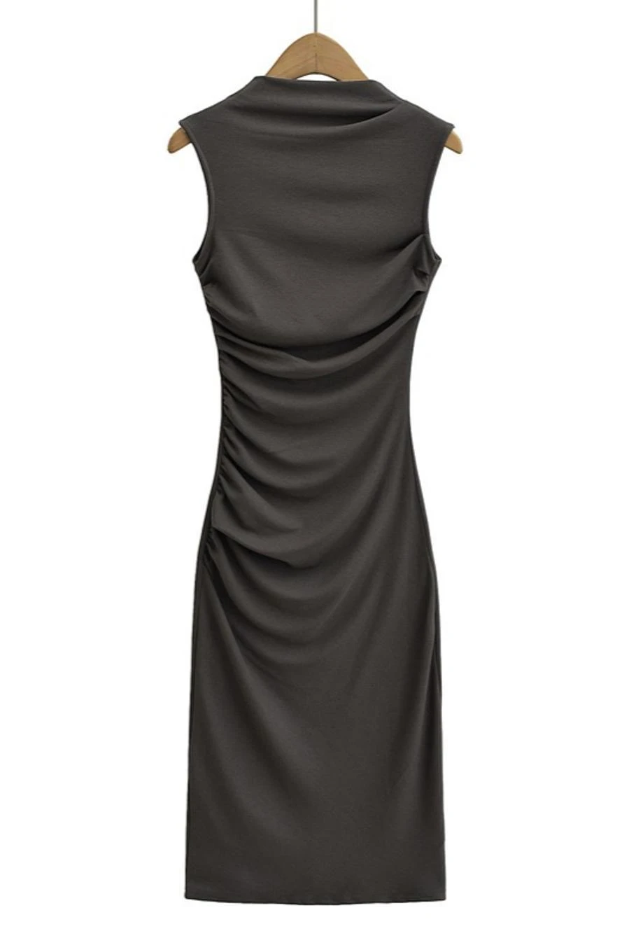 Sexy slight stretch half high neck slim sleeveless midi dress(size run small)