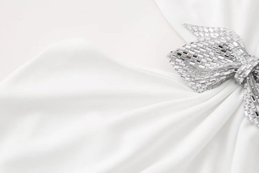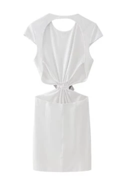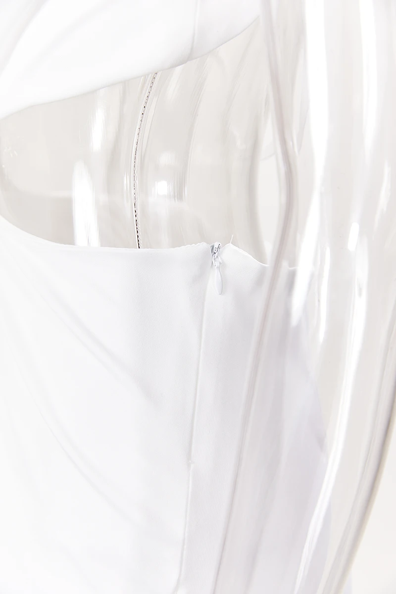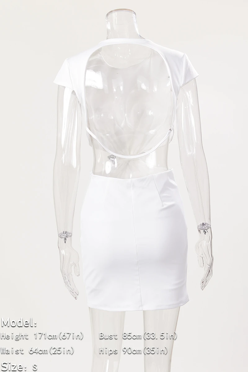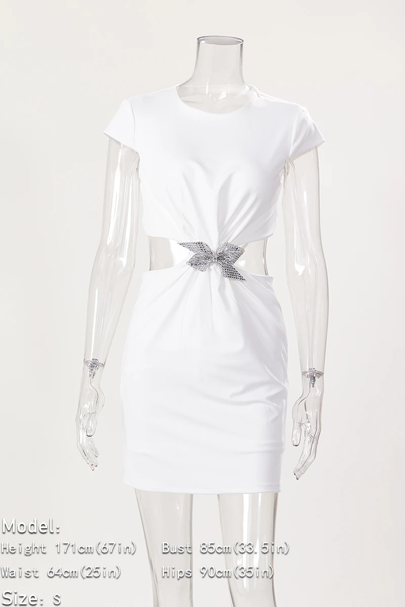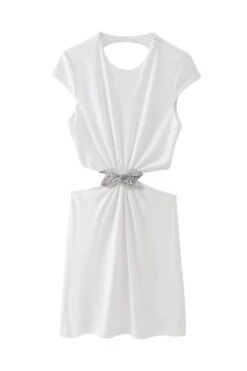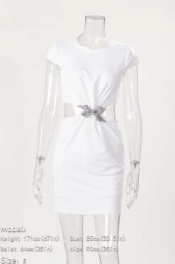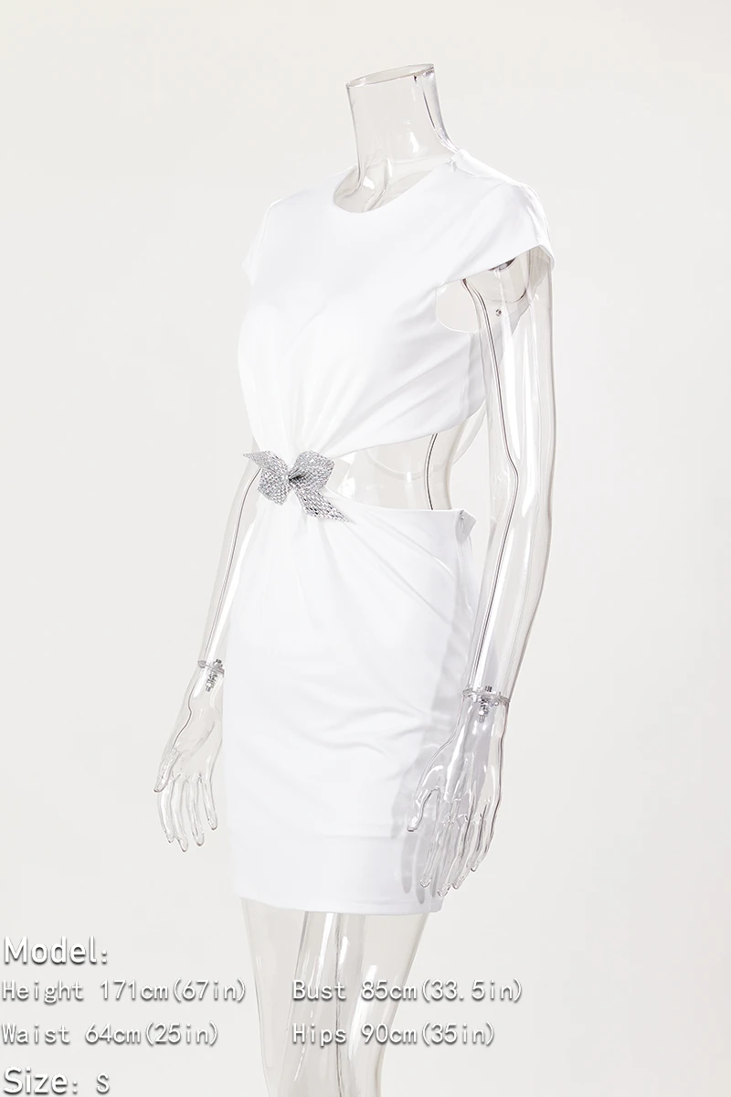 Sexy style slight stretch white rhinestone bow embellished backless mini dress