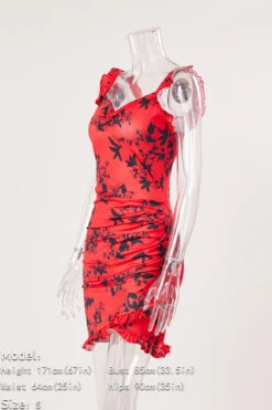 Sexy stylish plus-size batch printing ruffles strappy mini floral dress #7