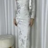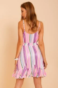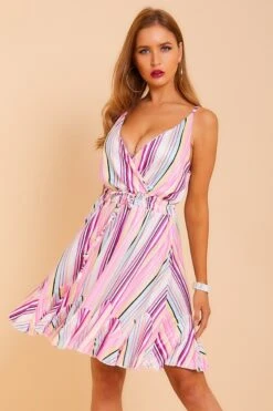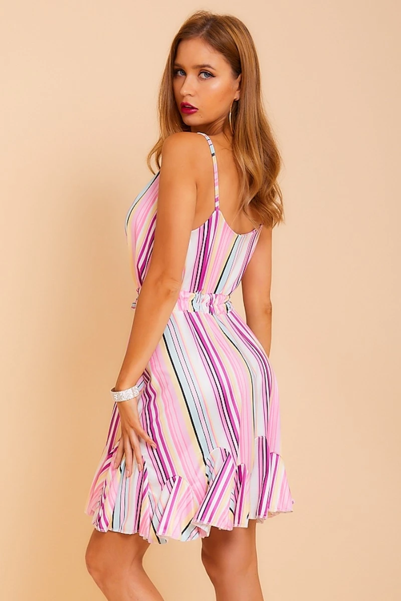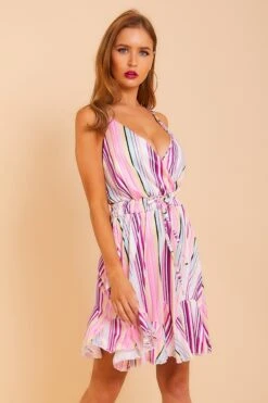 Sexy stylish stretch streaks printed sling V-neck pleated dress