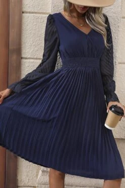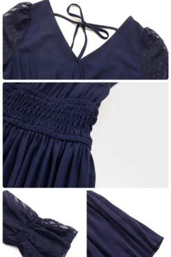 Sexy v-neck non-stretch solid color stitching lace sleeve loose midi dress