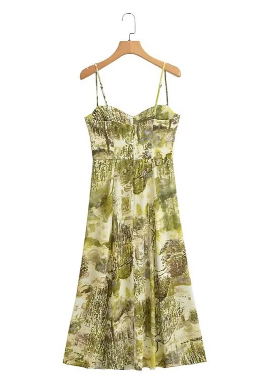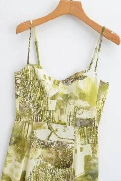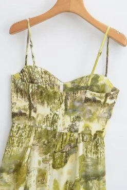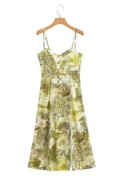 Sexy xs-l batch printing non-stretch slit sling backless midi dress