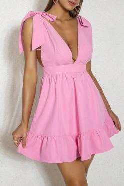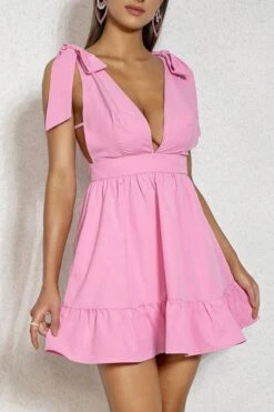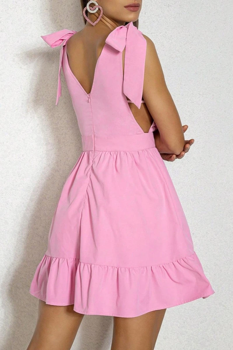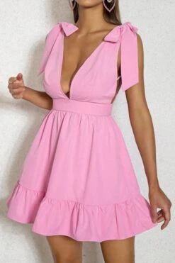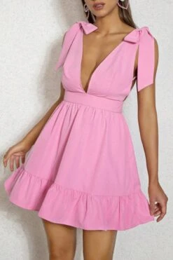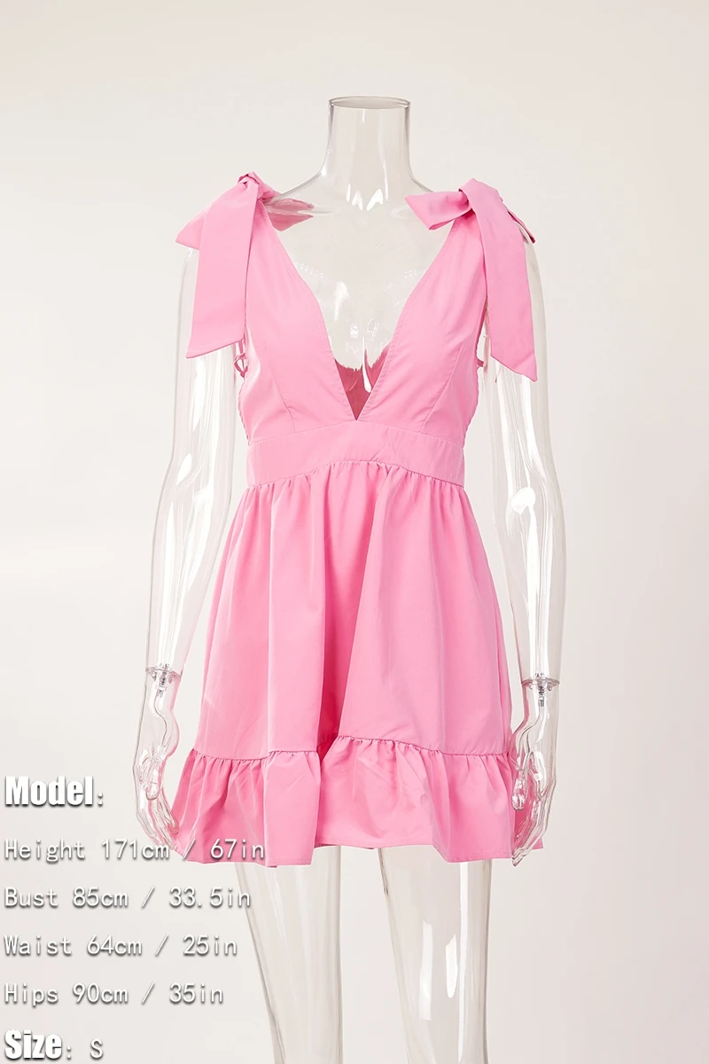 Sexy xs-l solid color non-stretch deep-v lace-up zip-up mini dress