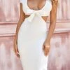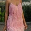 Sexy xs-l solid color stretch sling backless low-cut lined mini dress