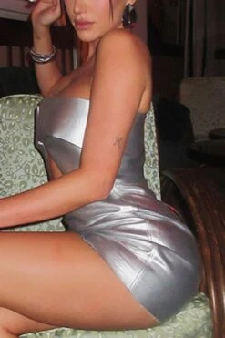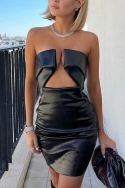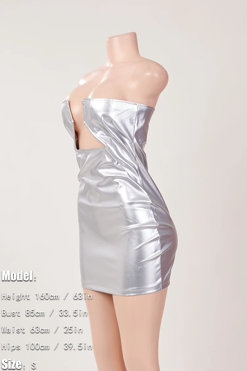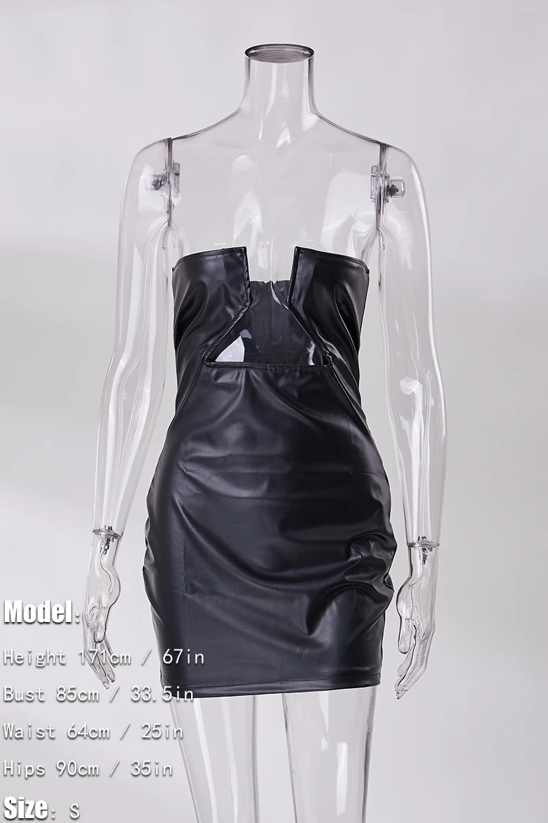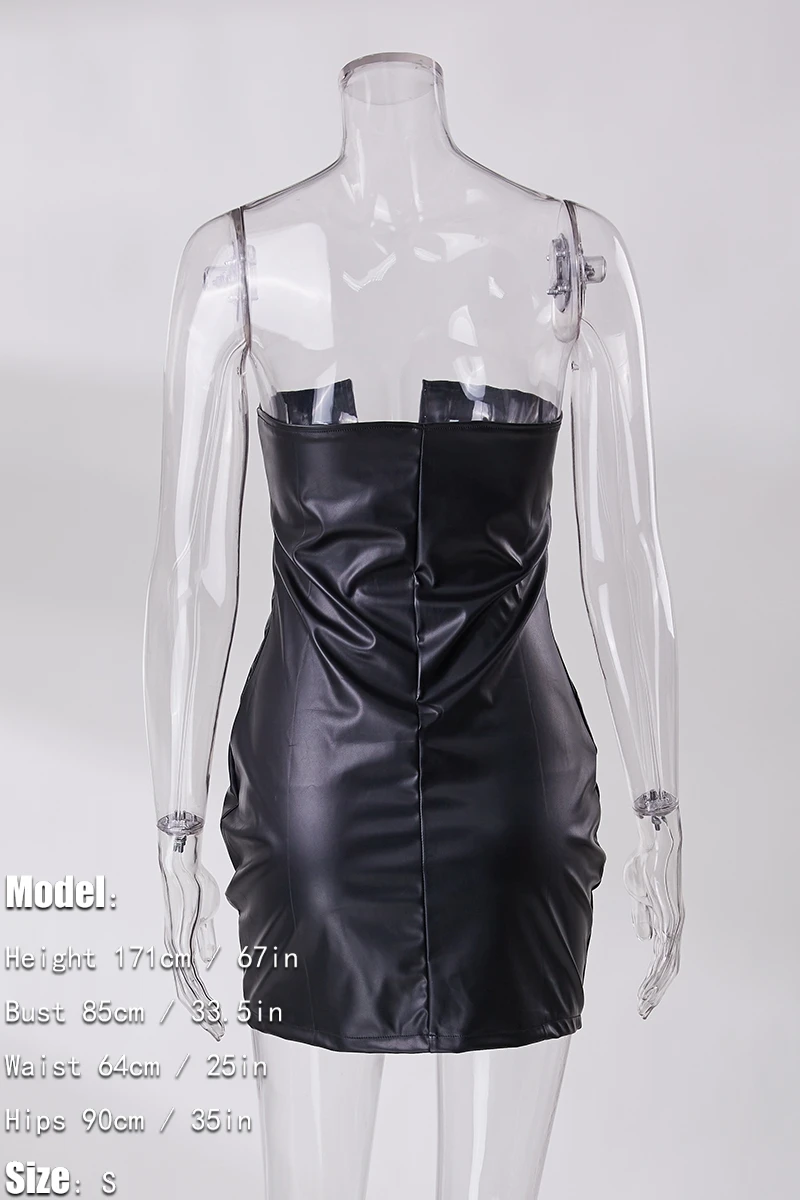 Slight stretch 2 colors pu leather tube design sexy mini dress